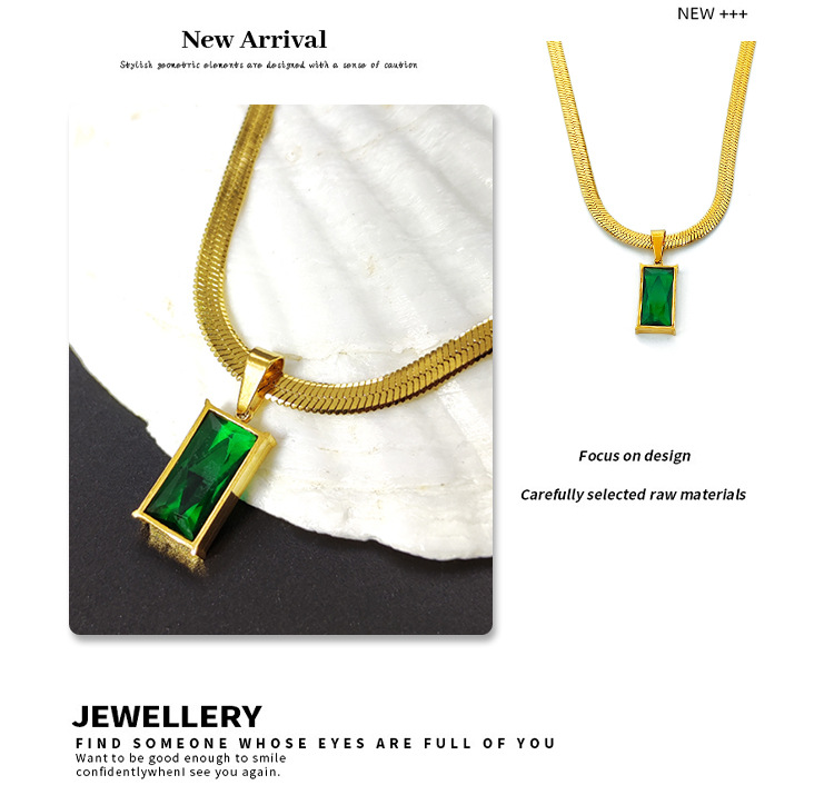 Japanese-Korean Style Niche Elegant Design Snake Bone Chain High-grade Light Luxury Emerald Zircon Pendant Titanium Steel Necklace Women