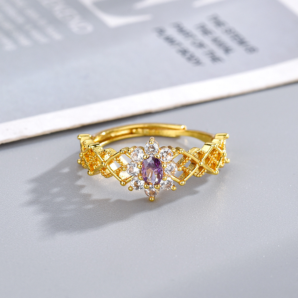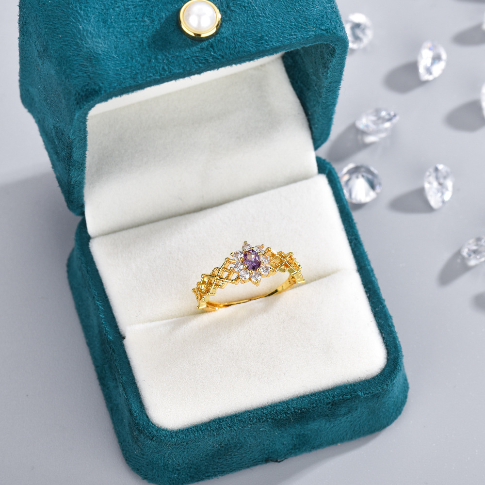 New Arrival Snowflake Amethyst Ring Women's Opening Japanese Style Sweet and Exquisite Court Temperament High-end All-match Style