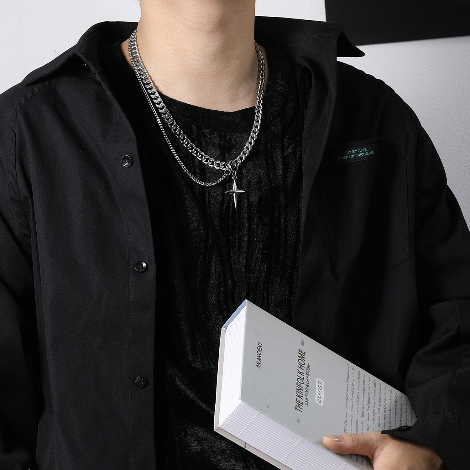 2023 new gender neutral wind double star Angel hip hop men's necklace High sense titanium steel does not fade