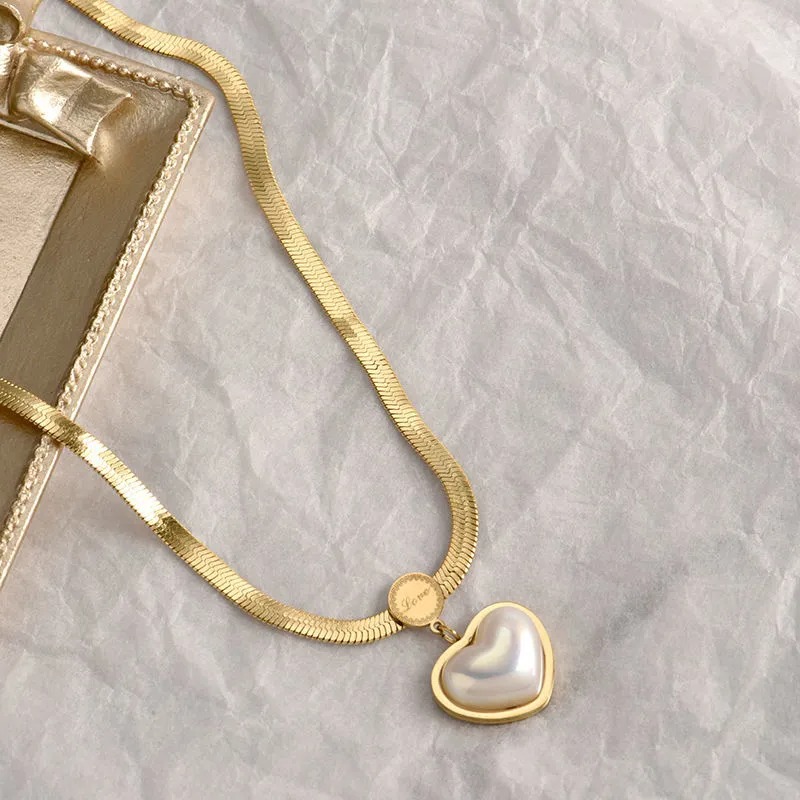Color: K6154 Heart Shaped White Shellfish Necklace Gold