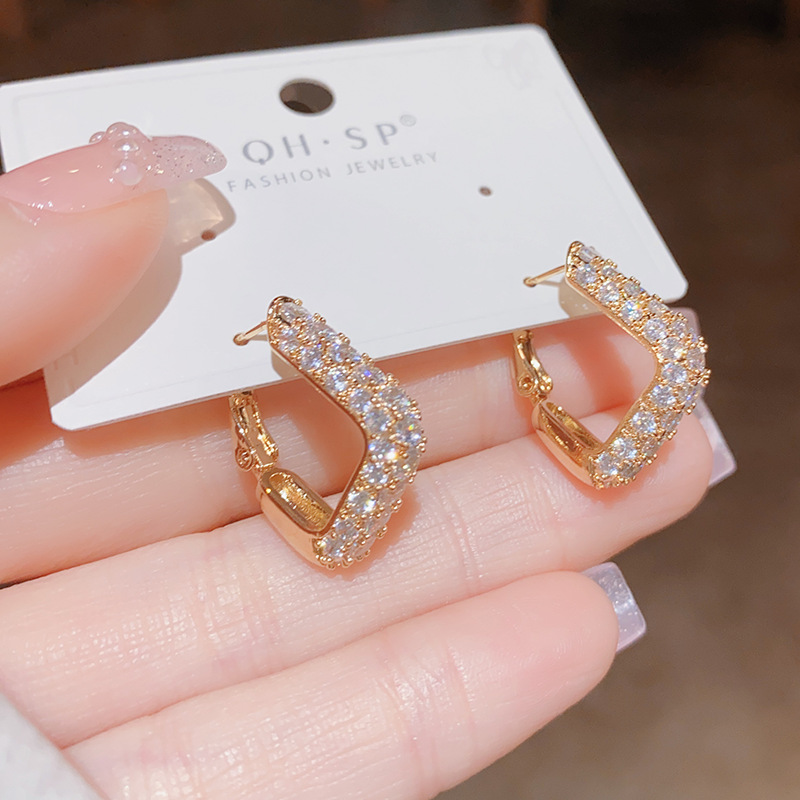 Color: Gold-square snap ear ring (thick gold plating)