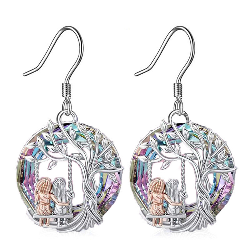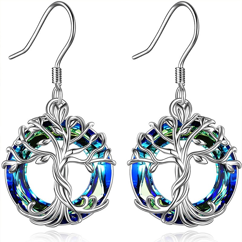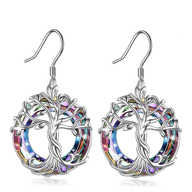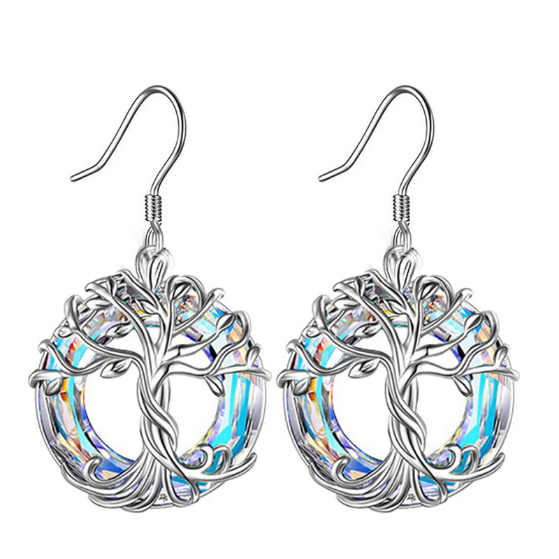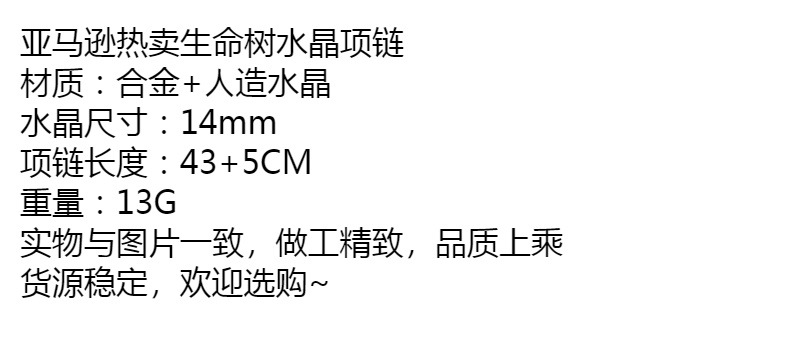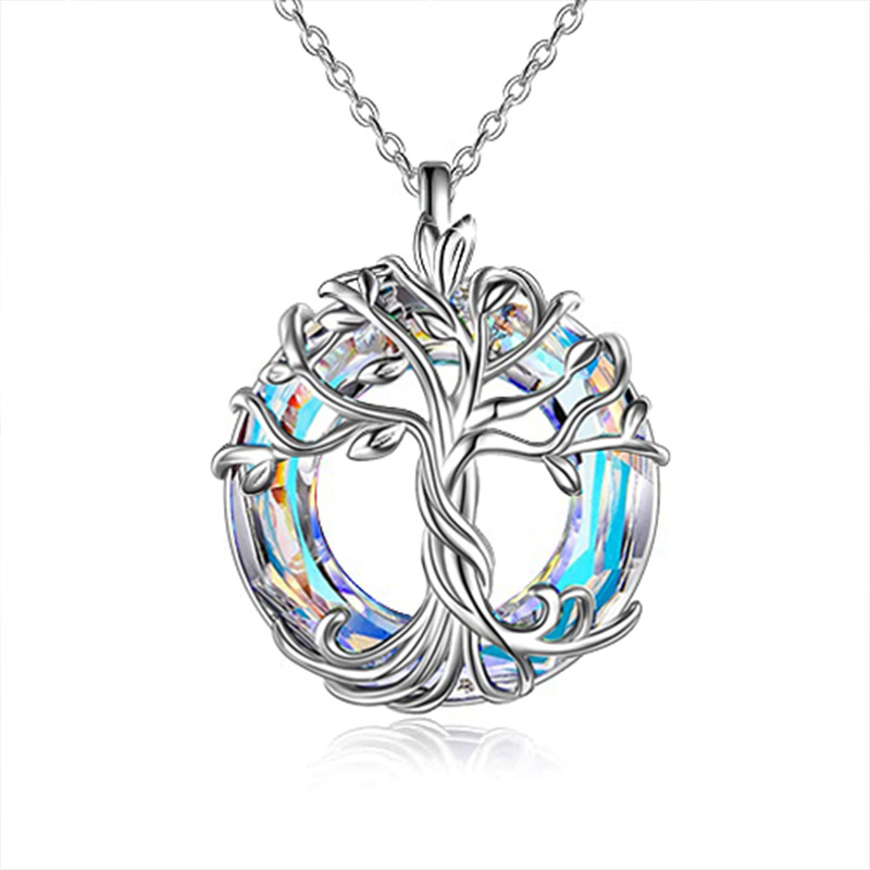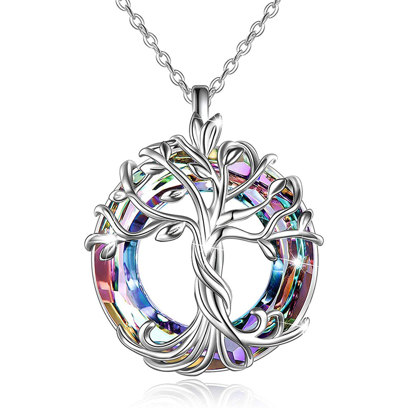Amazon Hot Sale Explosive Life Tree Crystal Necklace Alloy Set Color Ring Crystal Pendant Women Multicolor Spot