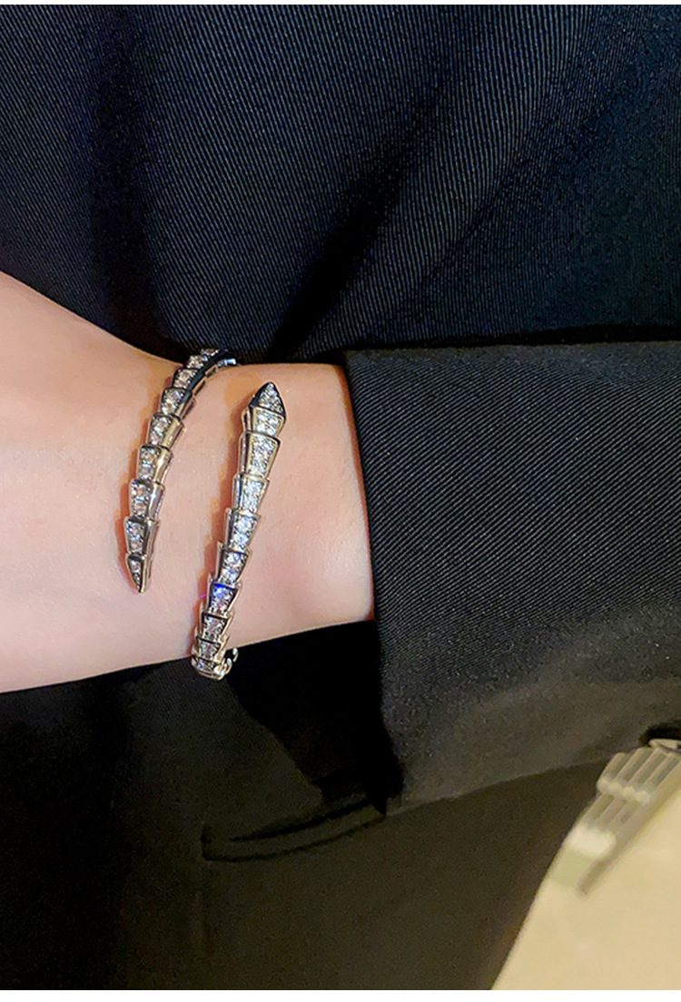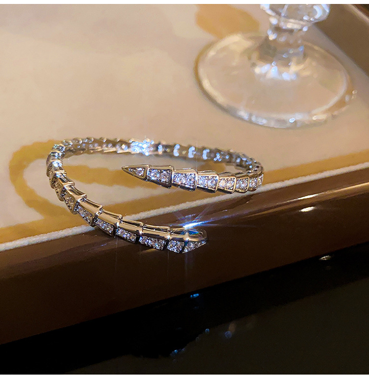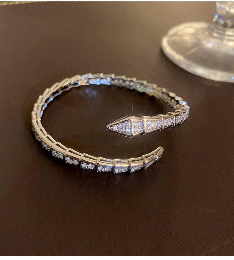 Color: S056 snake bone bracelet silver with diamonds on both ends