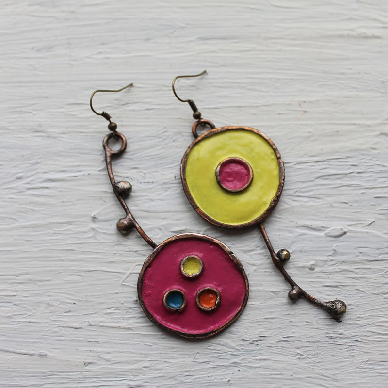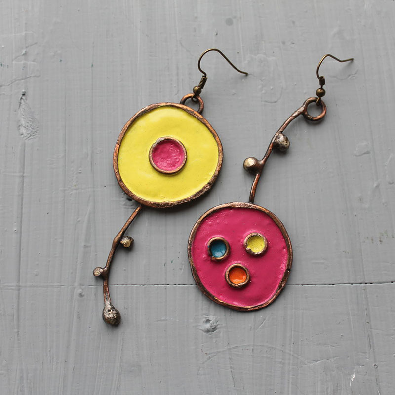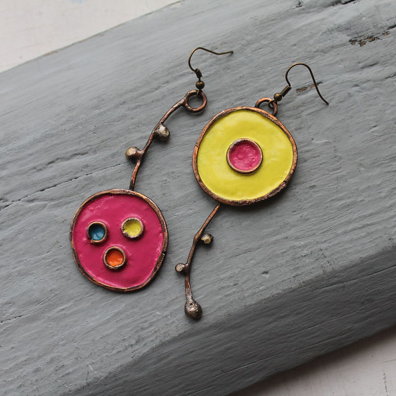 Creative hot sale asymmetric graffiti bronze earrings European and American artisans make Diamond-embedded earrings cross-border new products