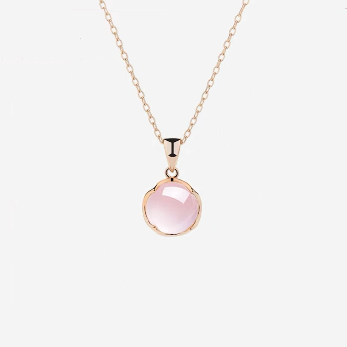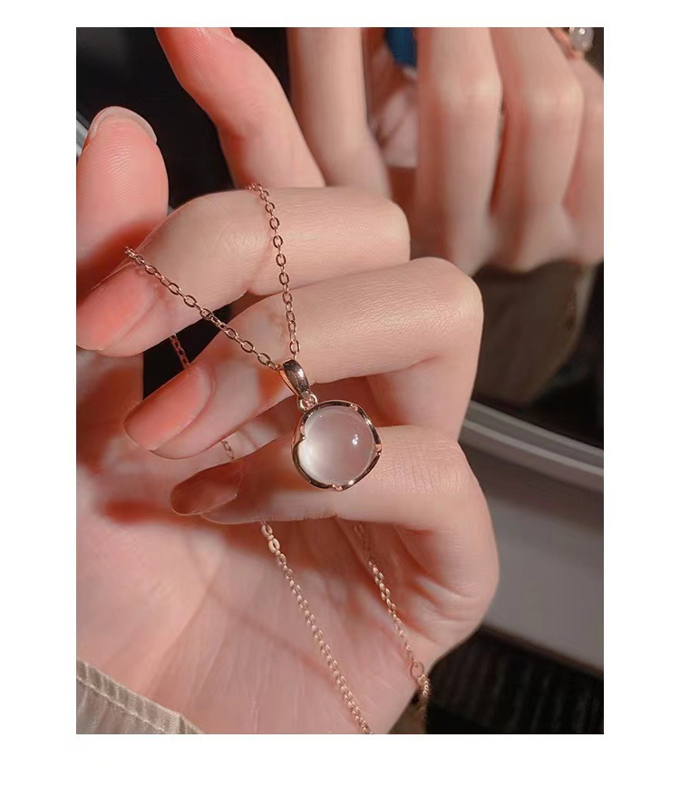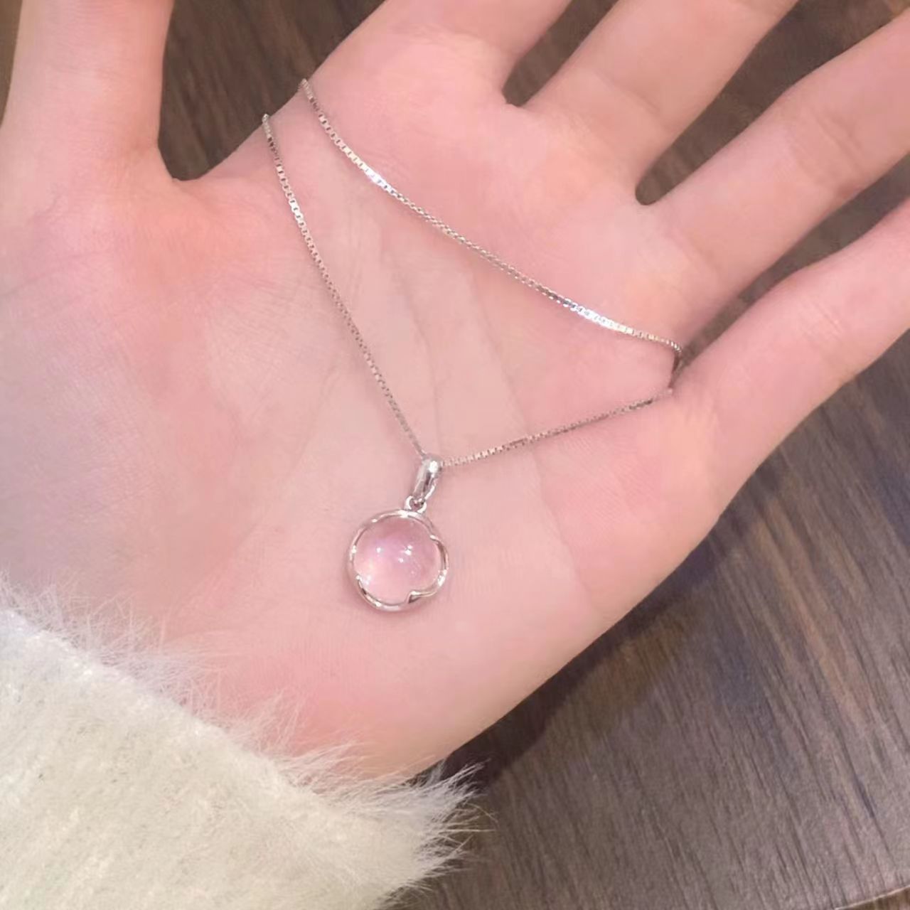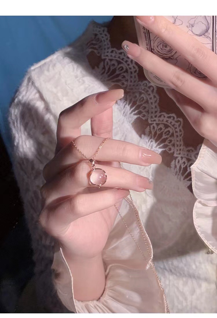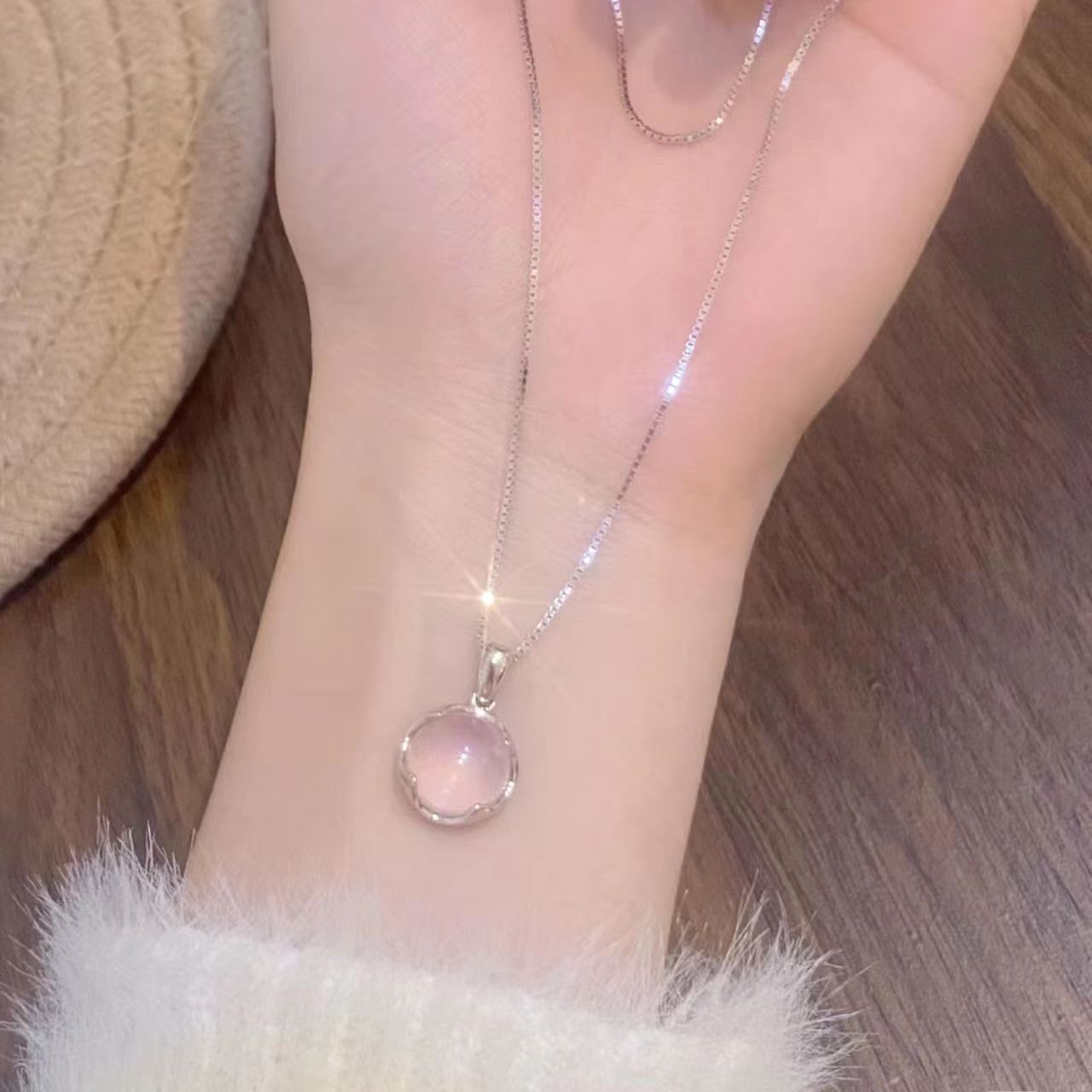 Pink Crystal Necklace Peach Blossom Pendant Light Luxury Niche ins Style Gentle Fairy Style Women's Summer Fashion All-match Collarbone Chain