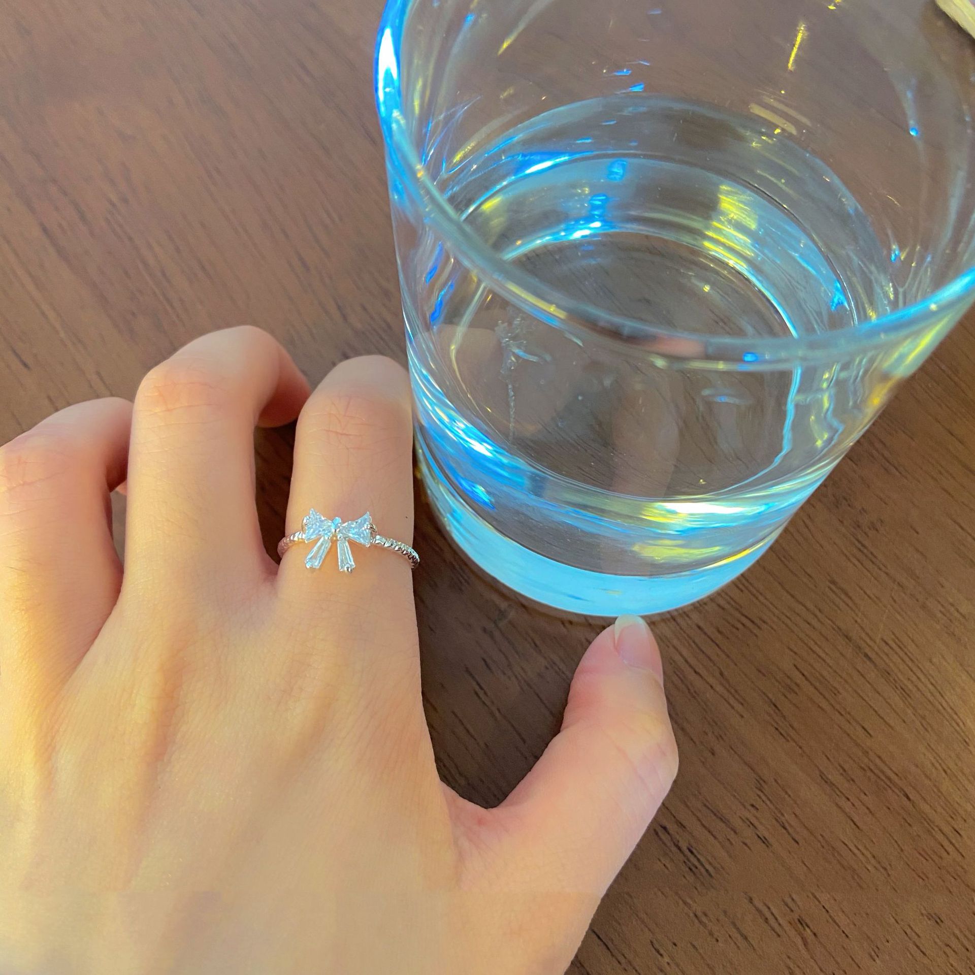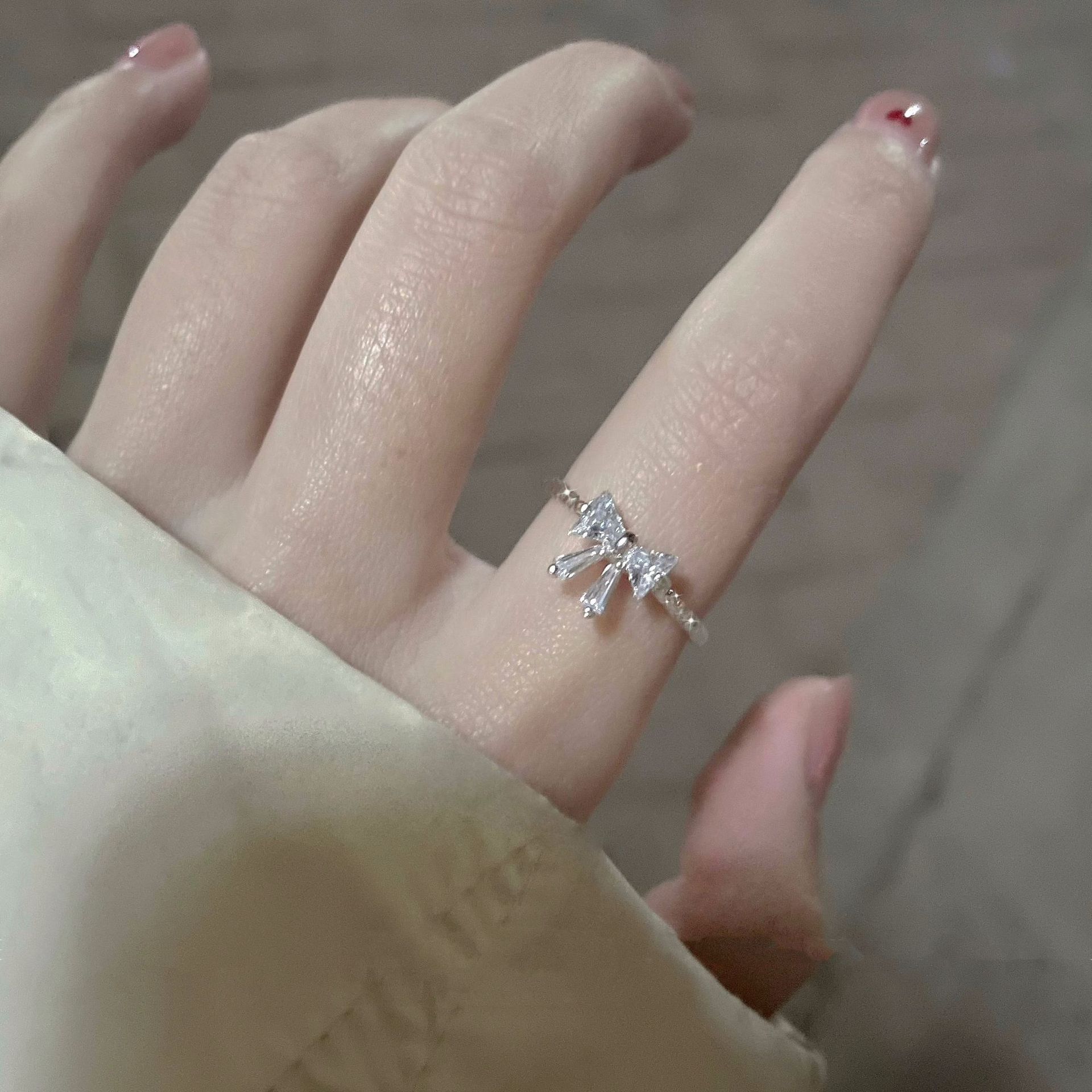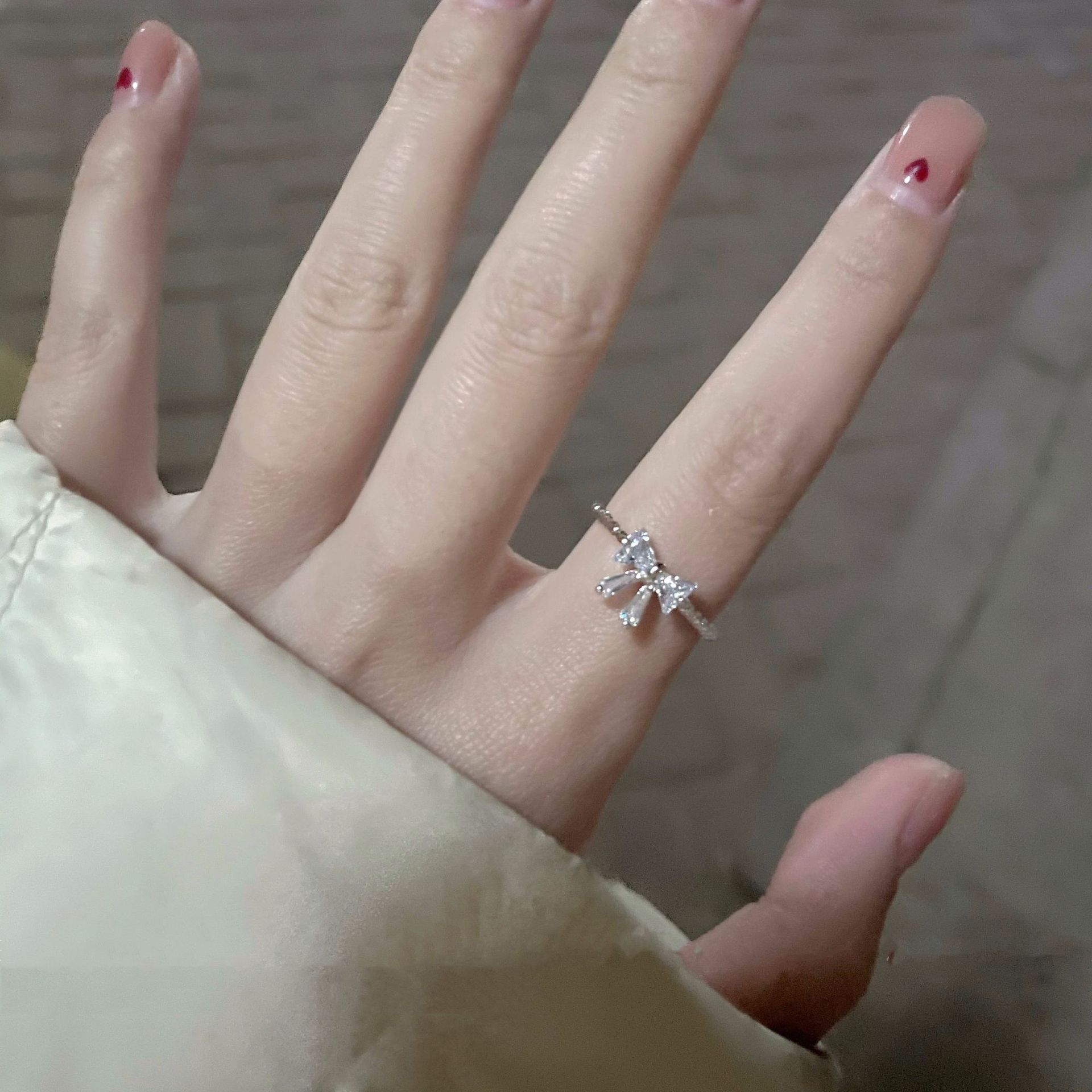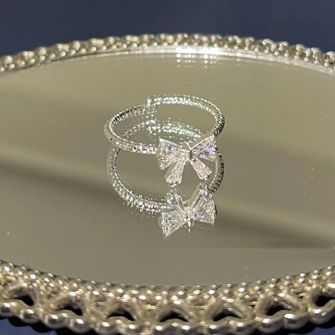 Princess bow zircon ring female niche high-end fashion temperament sweet opening adjustable ins wholesale