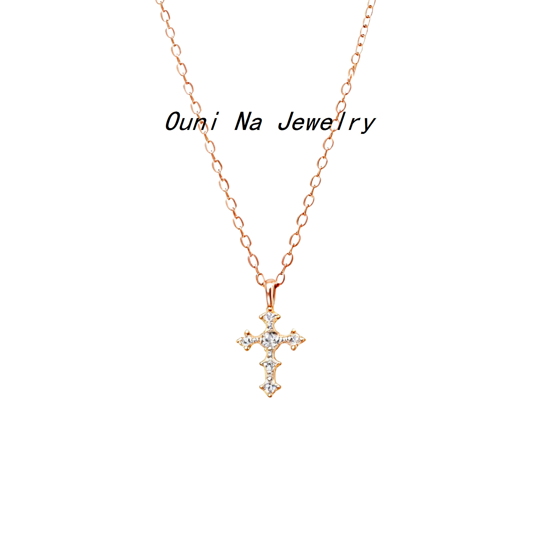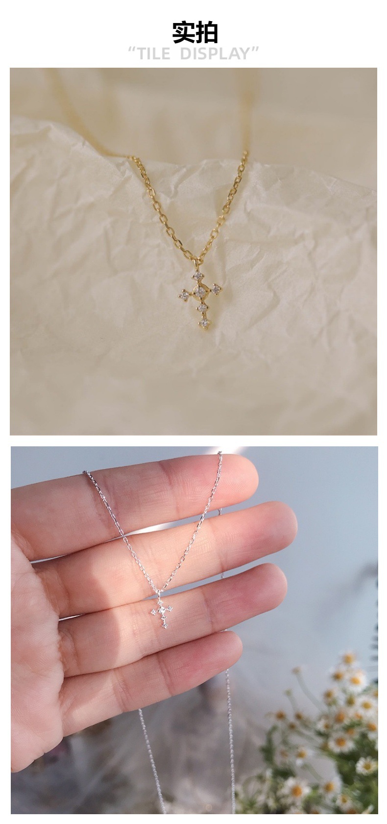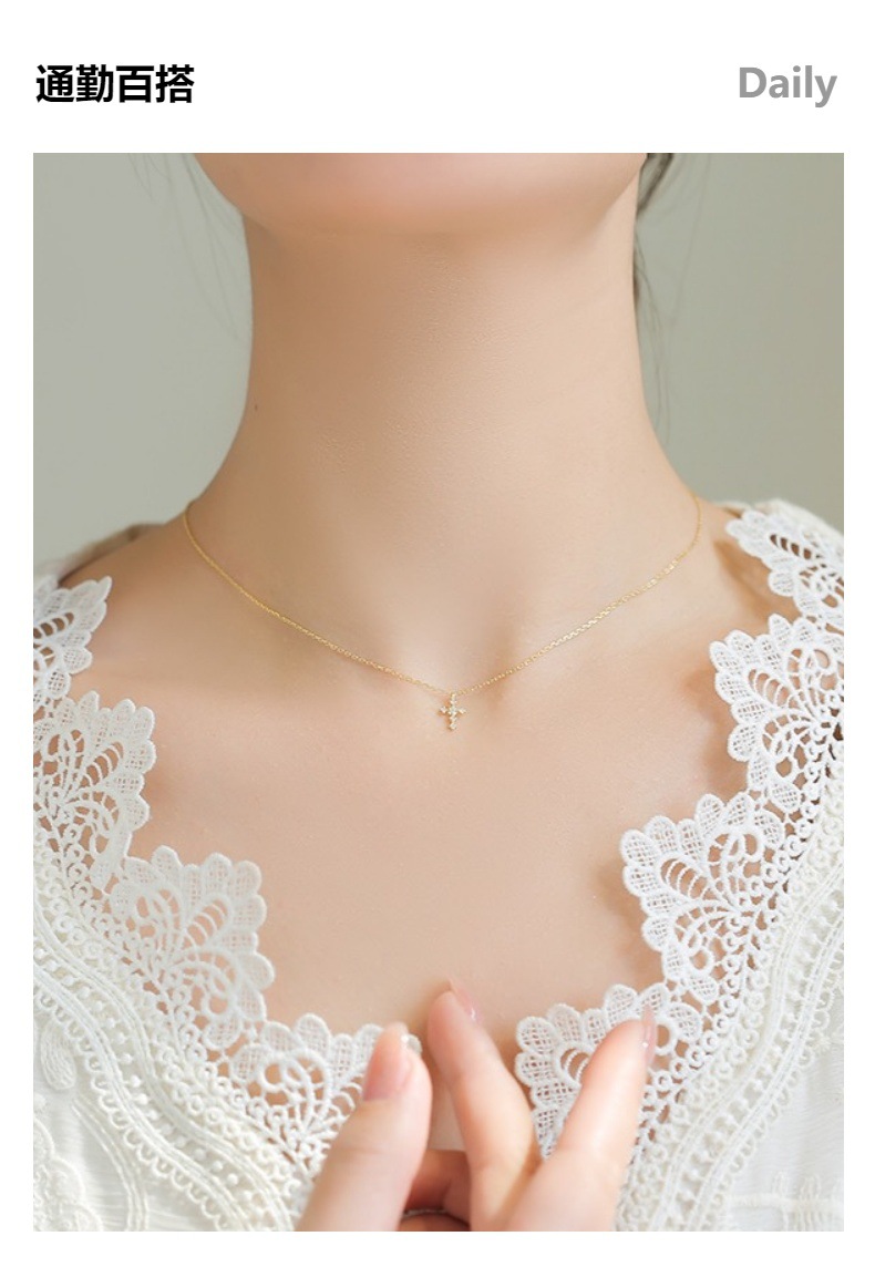 Niche Design S925 Sterling Silver Plated 14K Gold Cross INS Cold Wind Zircon Stacked Necklace Women's Clavicle Chain