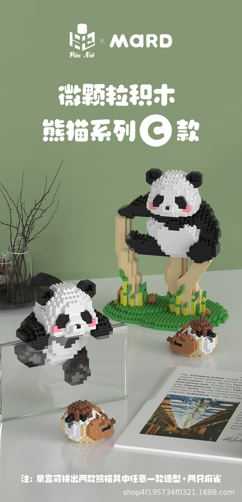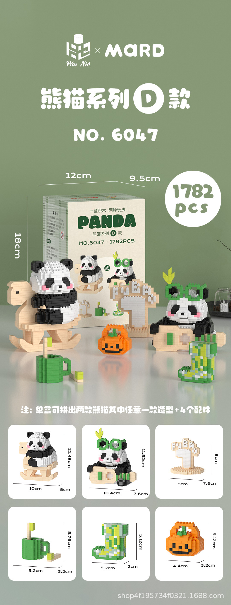 Color: Original 6047-1 box [national treasure panda flower type d] 1782 particles + (building block mat)