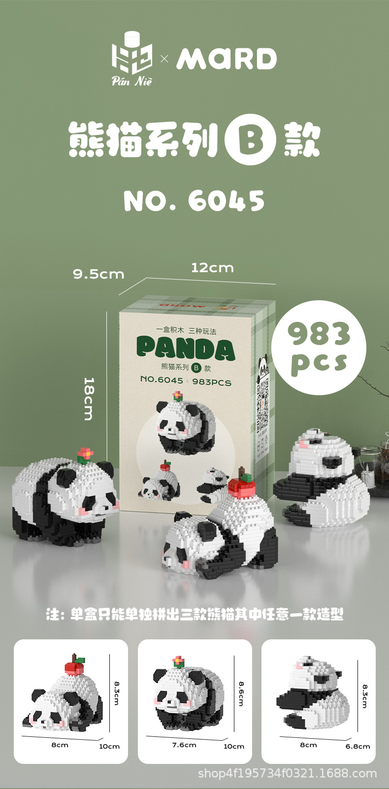 Color: Original 6045-1 box [national treasure panda flower type b] 983 particles + (building block mat)