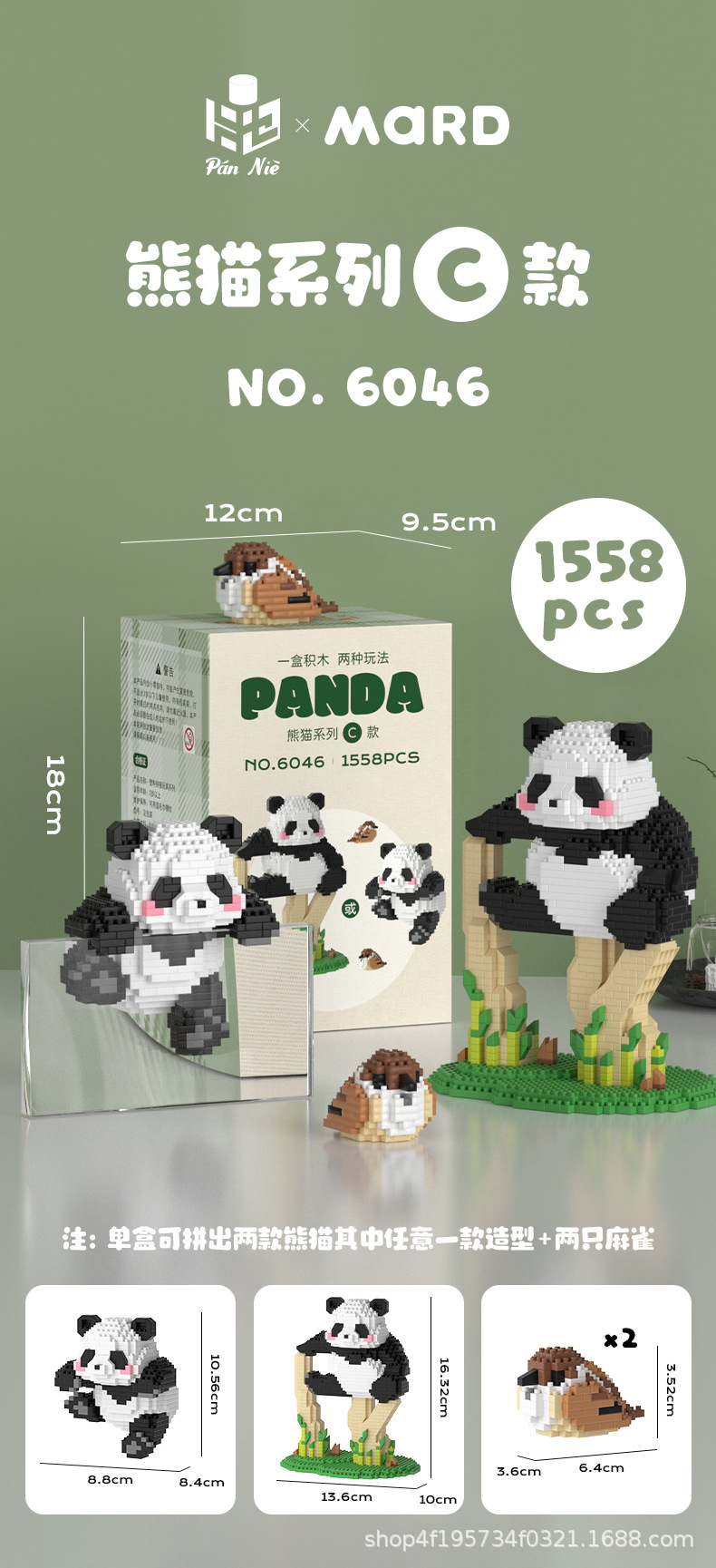 Color: Original 6046-1 box [national treasure panda flower type c] 1558 particles + (building block mat, hammer)