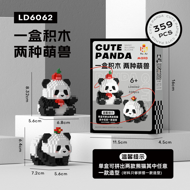 Color: Original 6048-2 boxes [giant panda menglan e style] 1268 particles + (building block mat)
