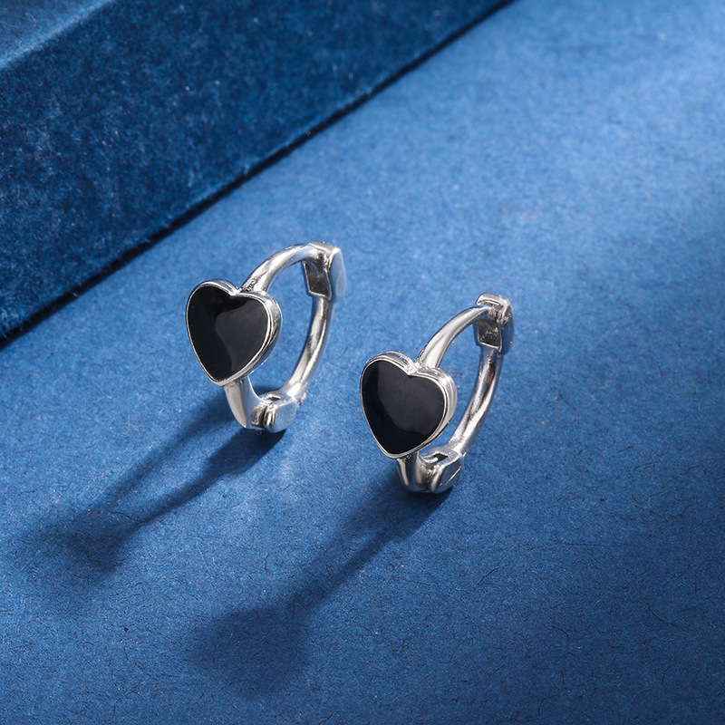 Black Love Ear Buckle S925 Earrings Women's 2023 New Fashionable Temperament High-end Women's Fashionable Internet Celebrity All-match