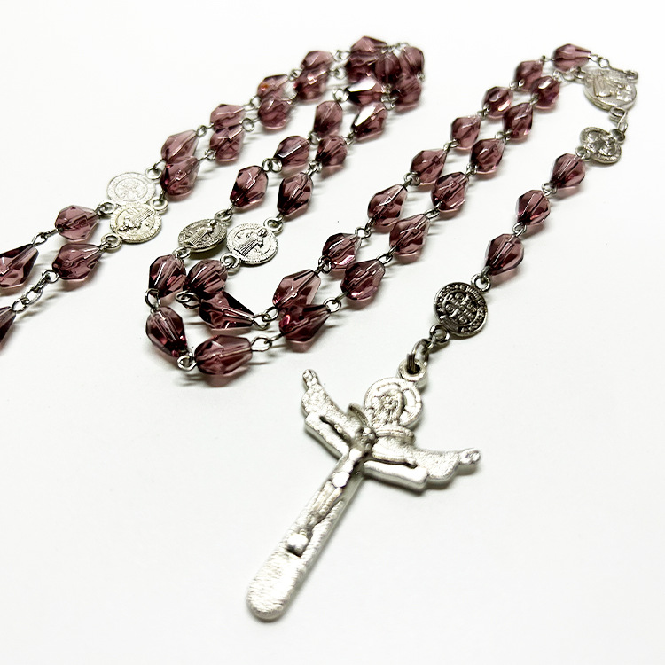 新款白铜丝链扣高透多切面水滴珠五端本笃款项链饰品