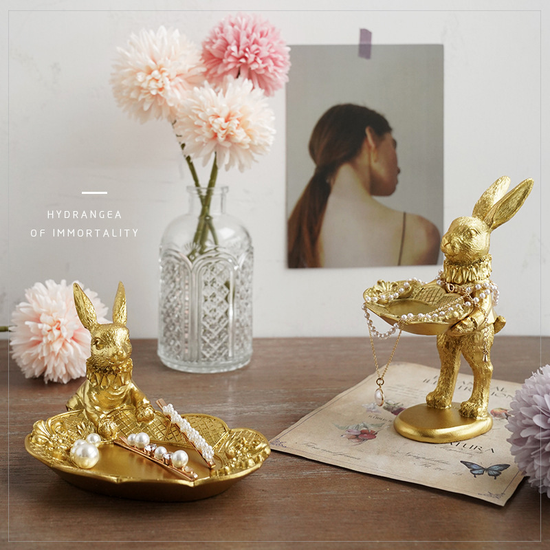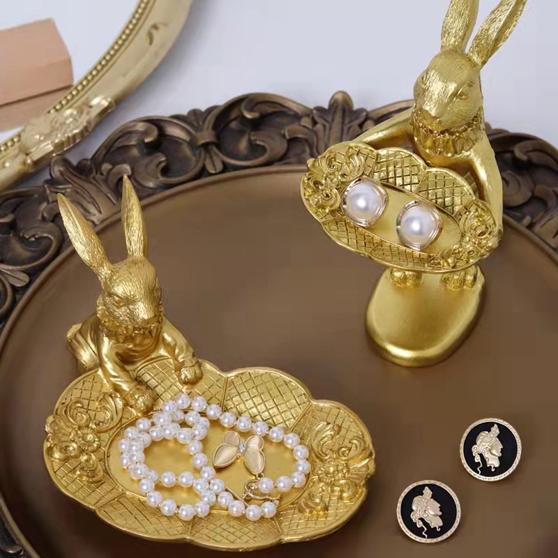 Jewelry Rack Creative Ornaments Easter Golden Bunny Jewelry Rings Earrings Display Stand Jewelry Tray