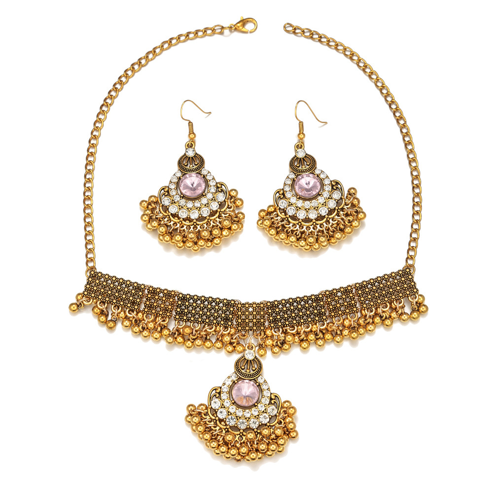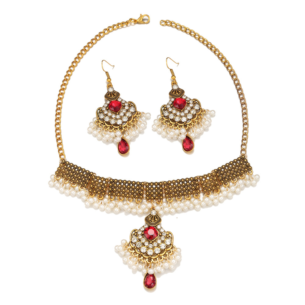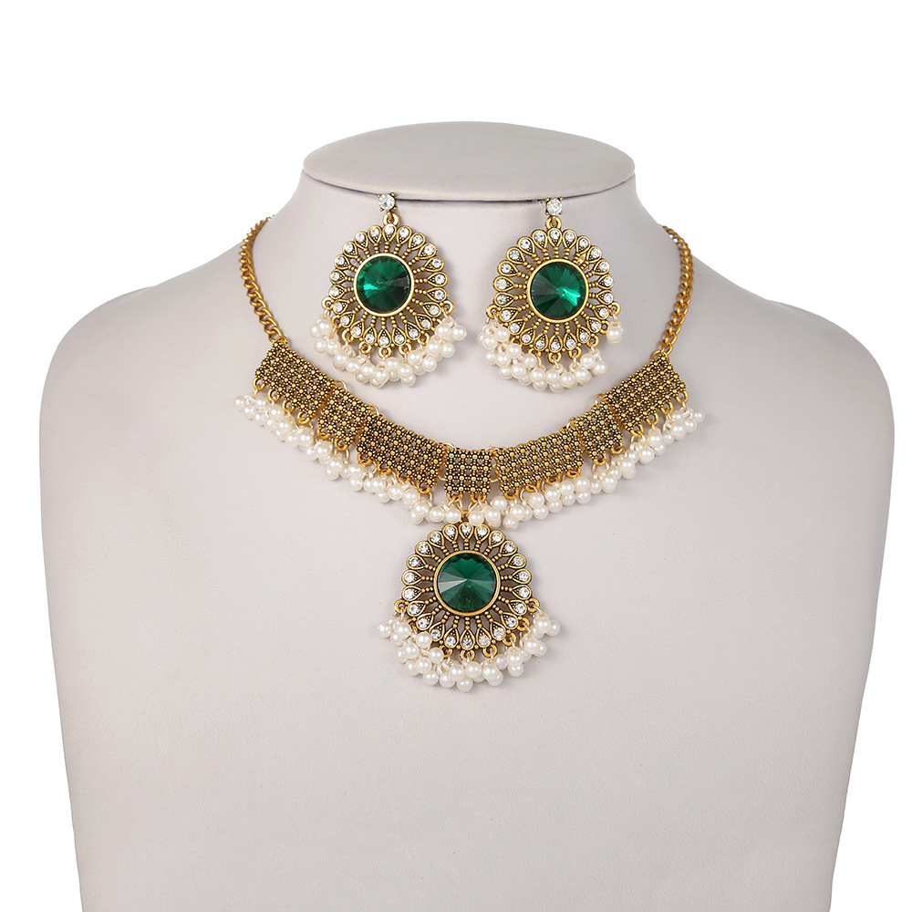 Middle East Fashion Vintage Collarbone necklace Earrings Set Indian Gem Pearl Pendant Tassel Jewelry necklace