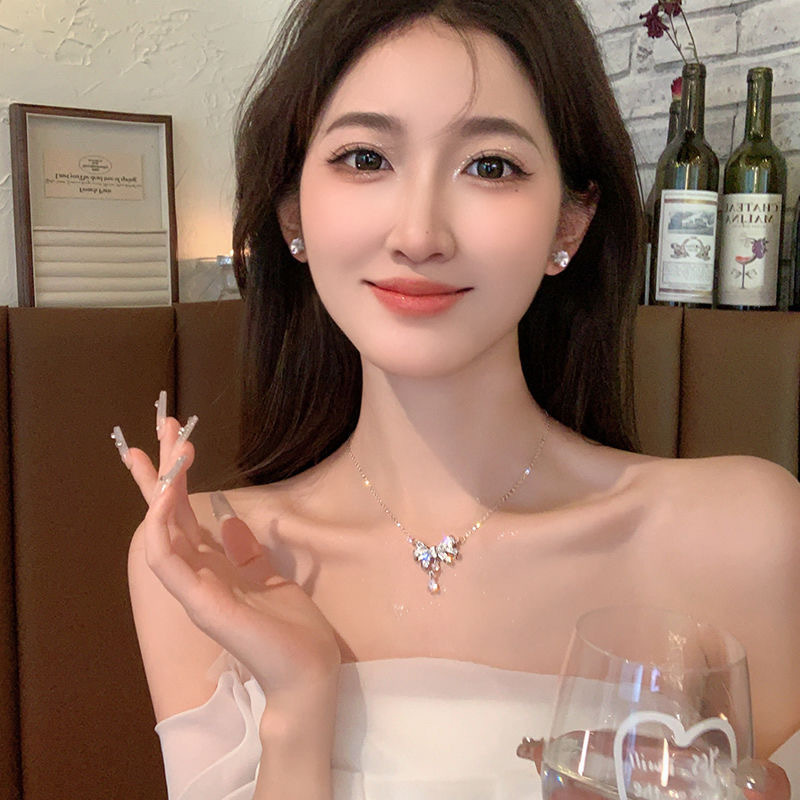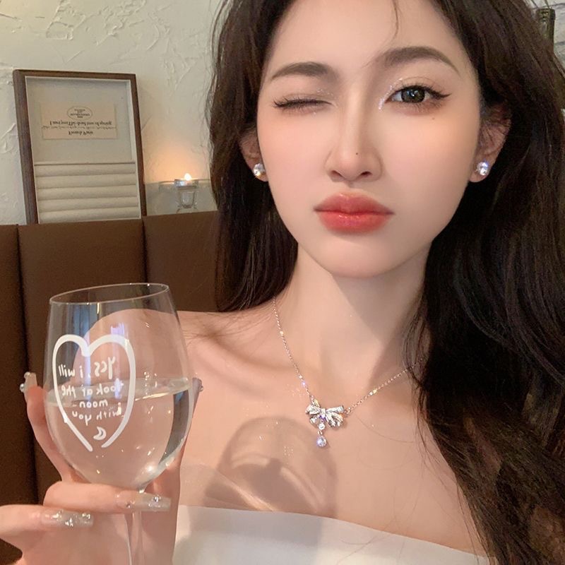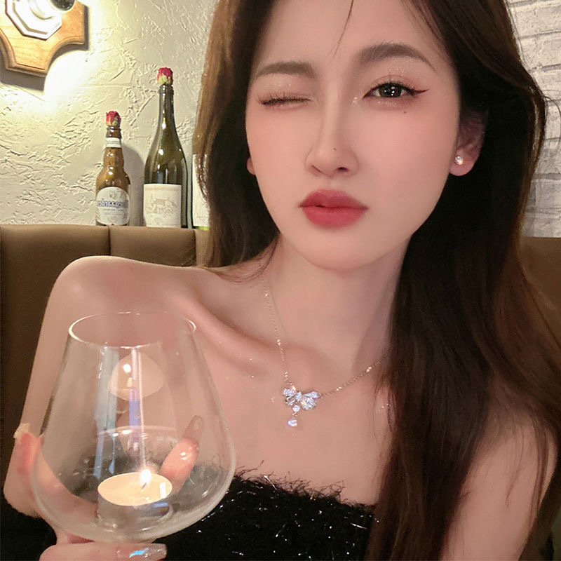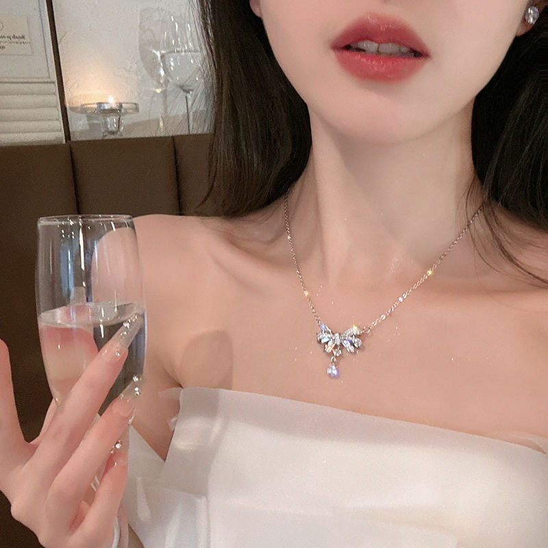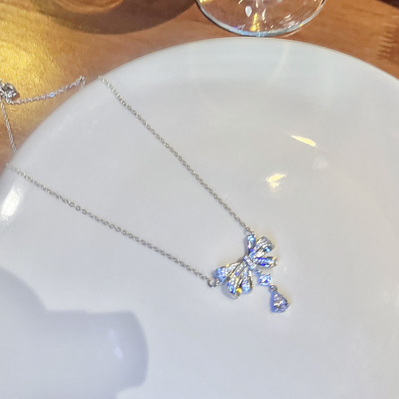 Fairy tears! Micro inlaid zircon bow drop necklace light luxury niche design high sense necklace jewelry fashion
