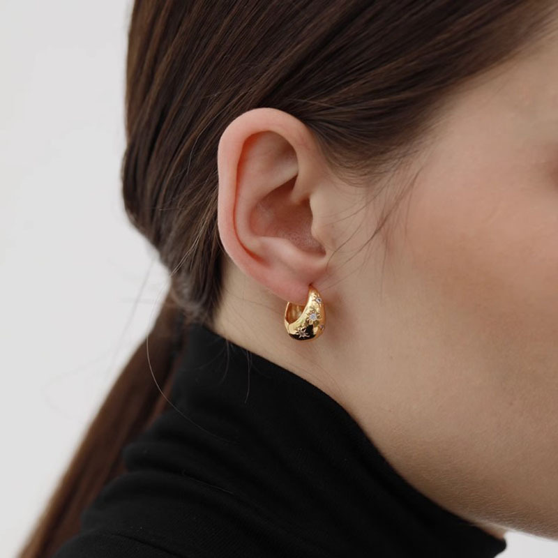 Original Niche Design New Fashion Zircon Earrings Women's Circle Drop Earrings French Vintage Metal Ear Buckle Earrings