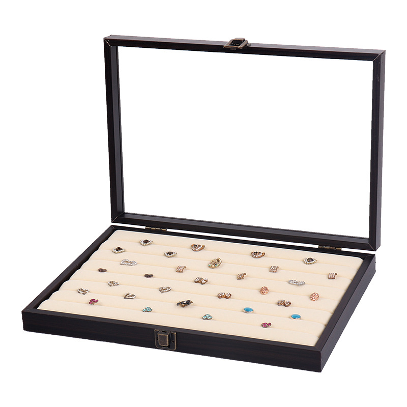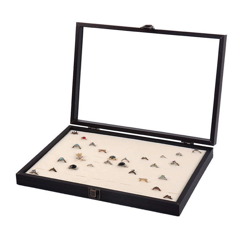 Specification model: Black pear wood 100-bit ring jewelry box*35.5*24.5*4.5cm