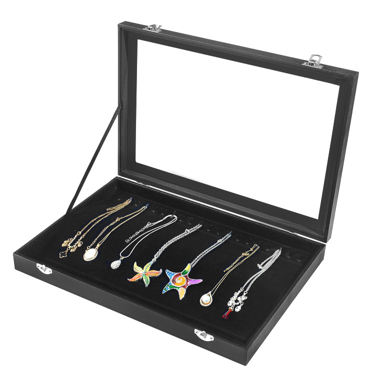 Specification model: Black velvet large 11-hook necklace jewelry box*35.5*24.5*4.5cm