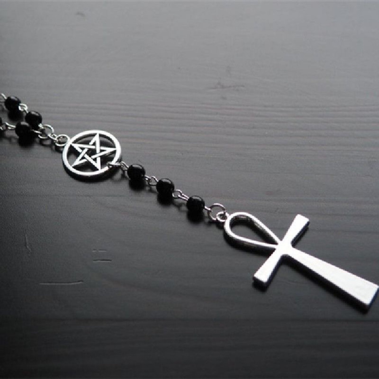 Dark Gothic pentagram cross necklace rosary necklace sweater chain Halloween gift