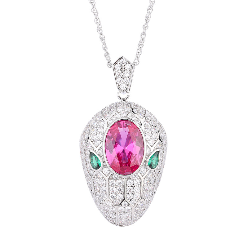 Zhuang Shengsheng Jewelry New Copper Gold-plated Rose Red Corundum Light Luxury Snakehead Set Pendant Ring 10*14