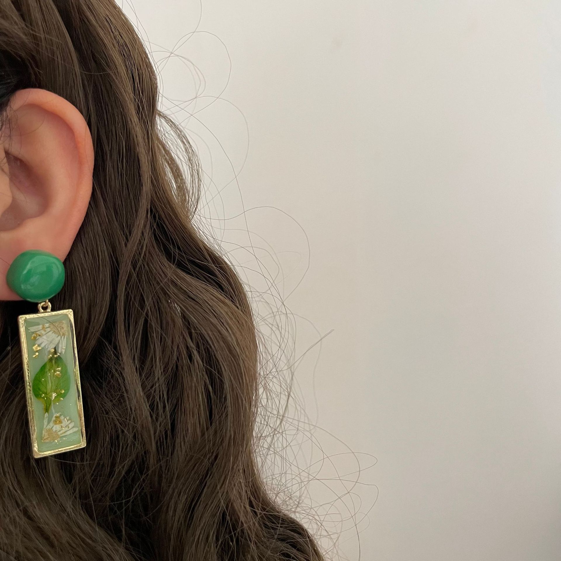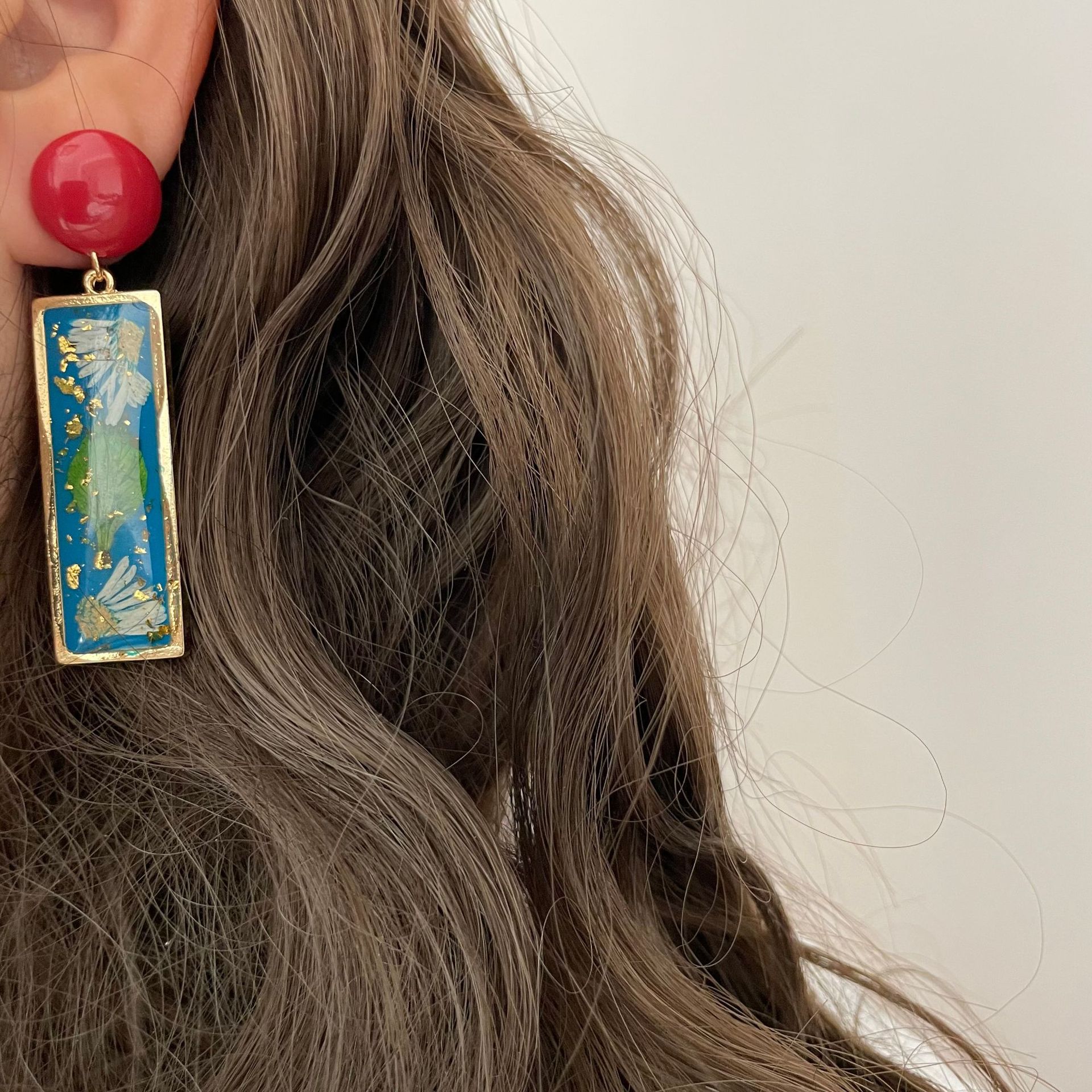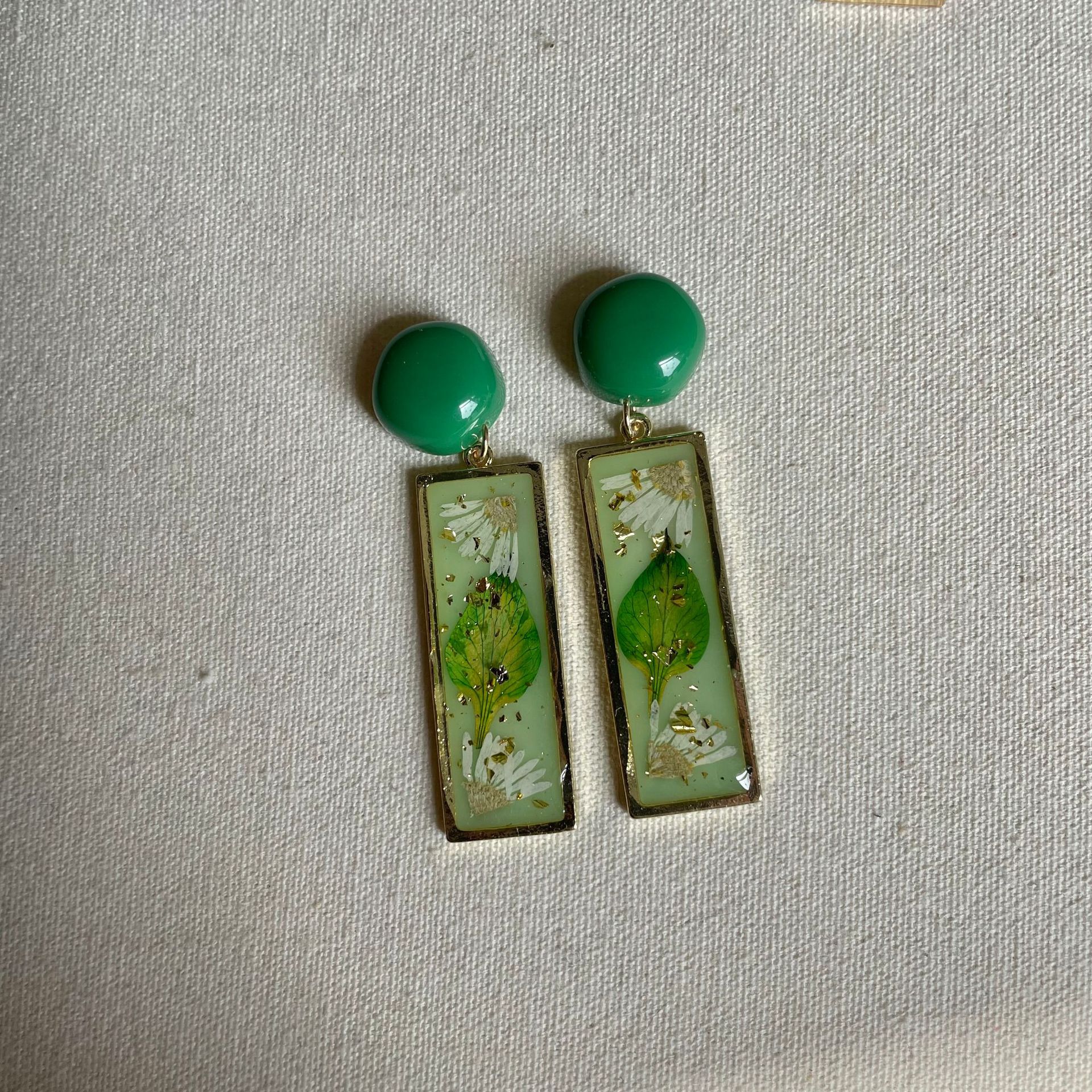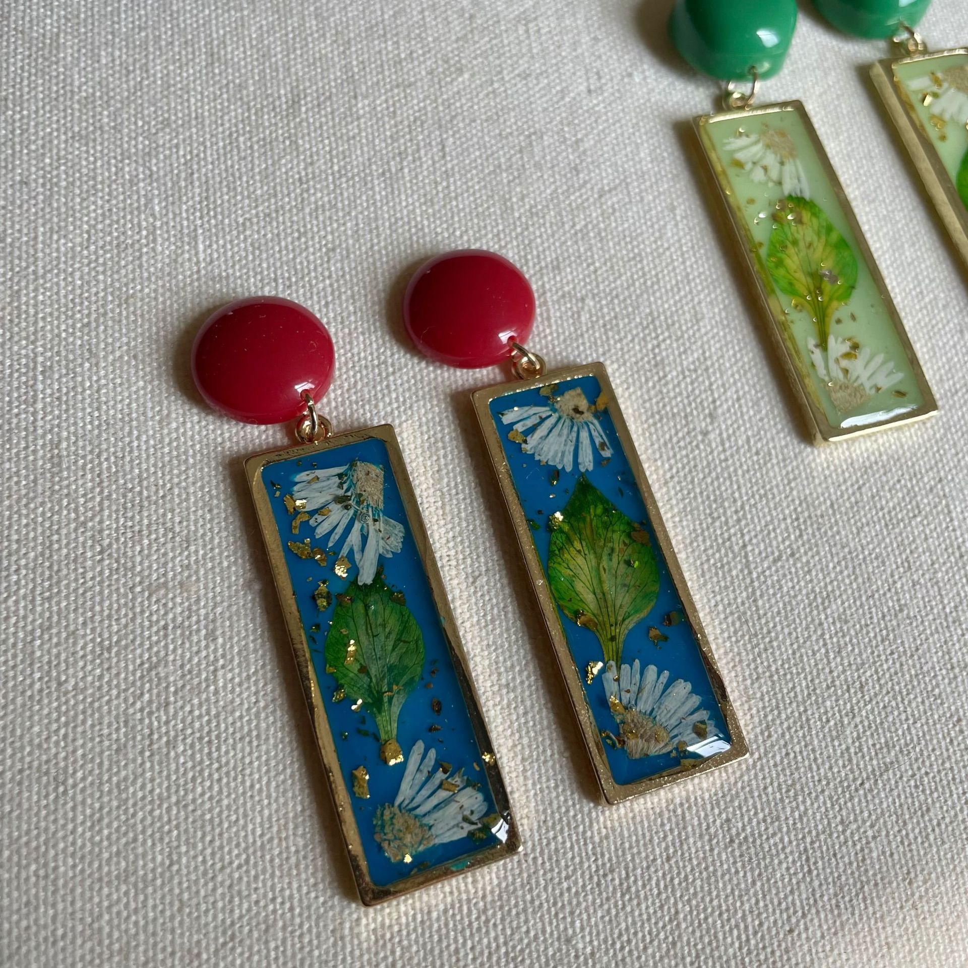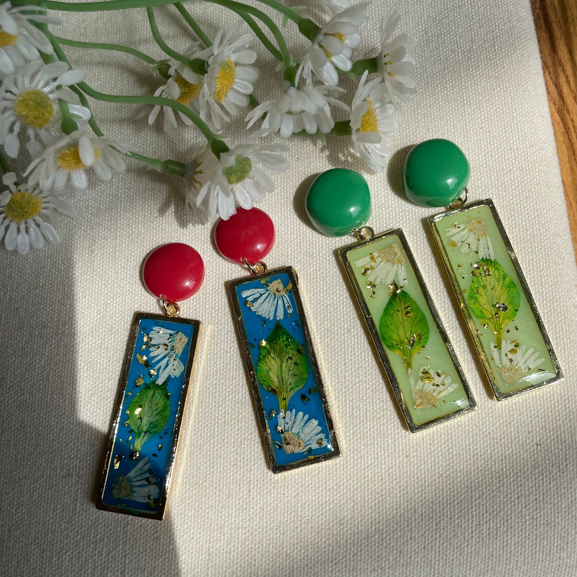 Spring Garden Vintage Contrast Color Drop Glue Dried Flower Eternal Flower Earrings Temperament Long Daisy Leaf Earrings Earrings Earrings
