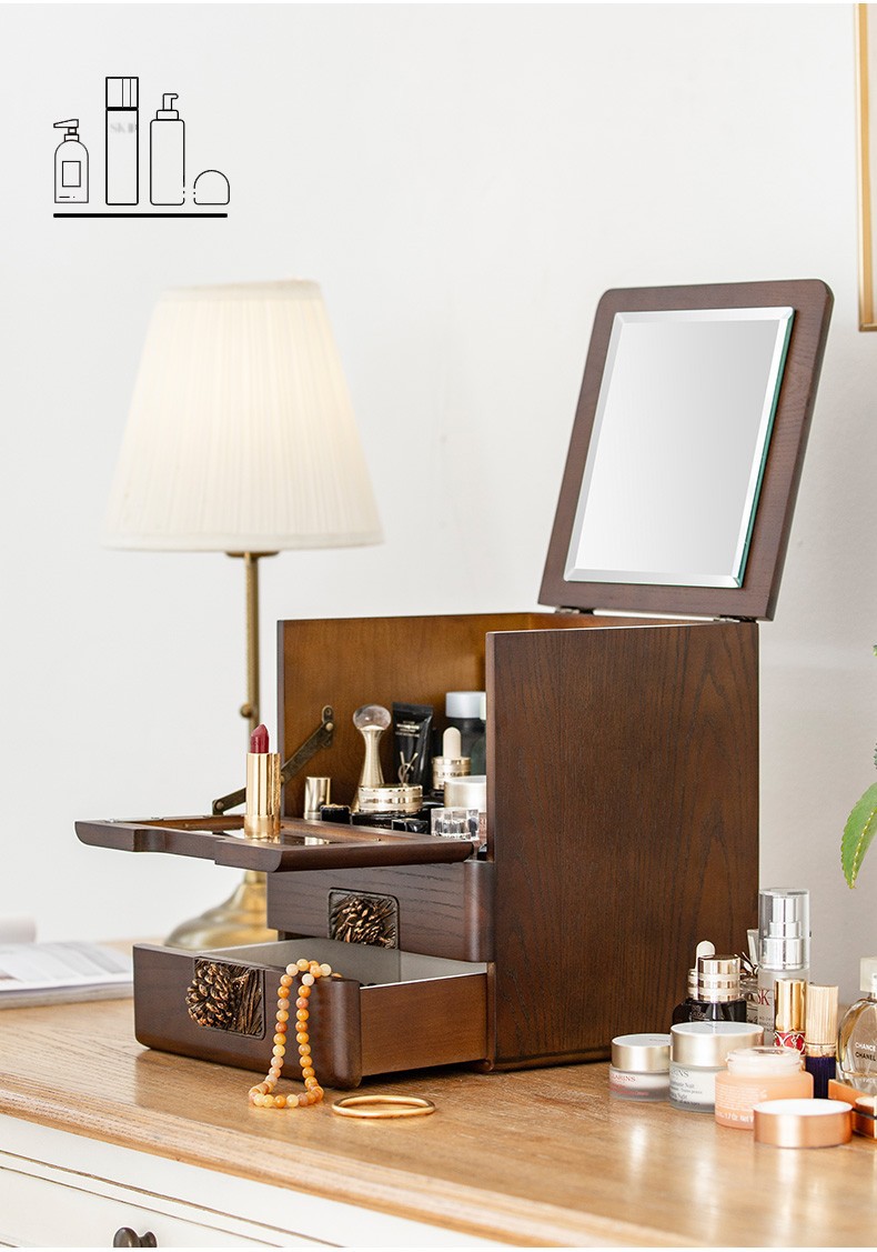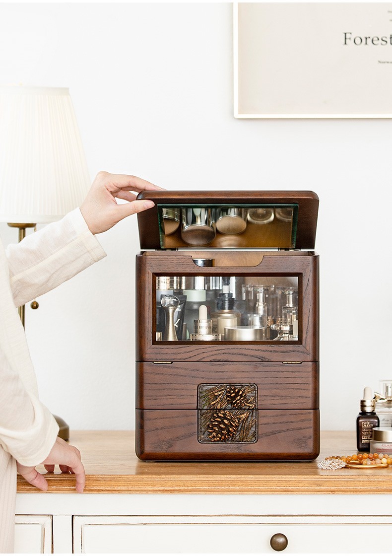 Storage Box Desktop Dust-proof Storage Rack Wooden Cosmetic Lipstick Artifact Dressing Table Acrylic Transparent Jewelry Box