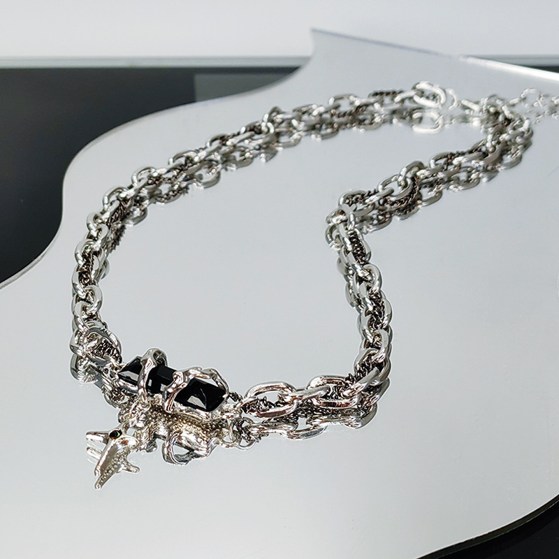 Necklace Men's Niche Design High-end Sense Hip-hop Wrapped and Stacked Wear Handsome All-match High Street Clavicle Chain Men's Trendy Pendant