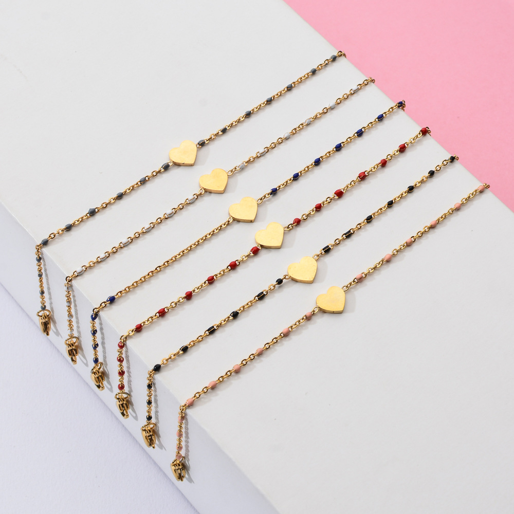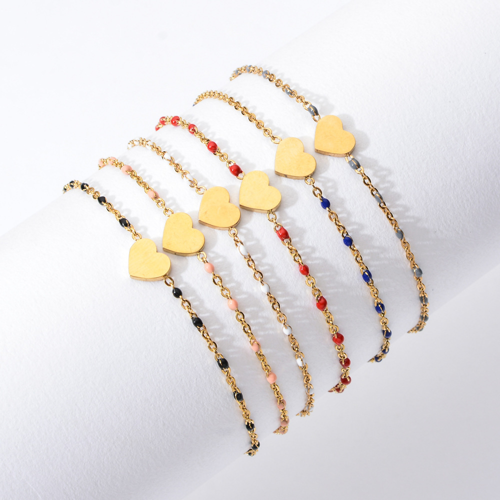 European and American Fashion Bohemian Stainless Steel Bracelet for Women Colorfulful Oil Drop Rice Beads 18K Electroplated Heart Bracelet Wholesale