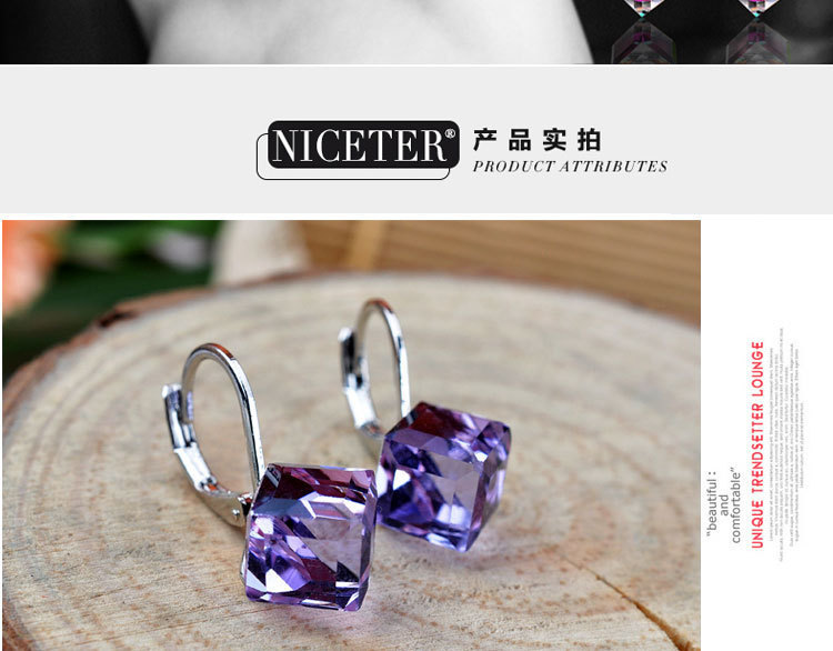 Color: Purple Crystal Rubik's Cube Korean Ear Buckle