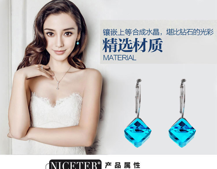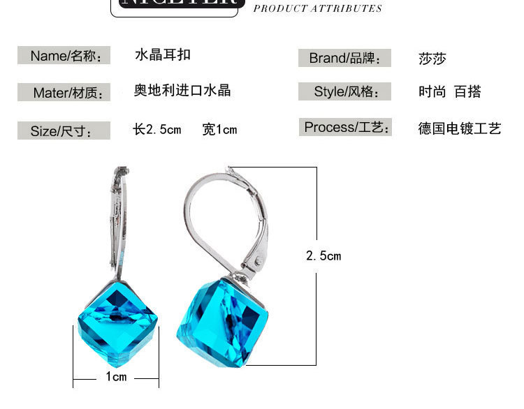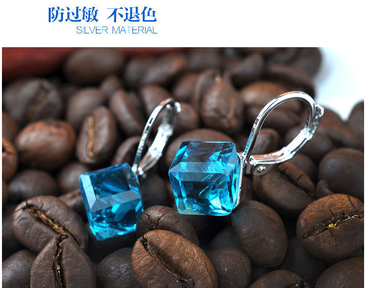 Color: Lake Blue Crystal Rubik's Cube Korean Ear Buckle