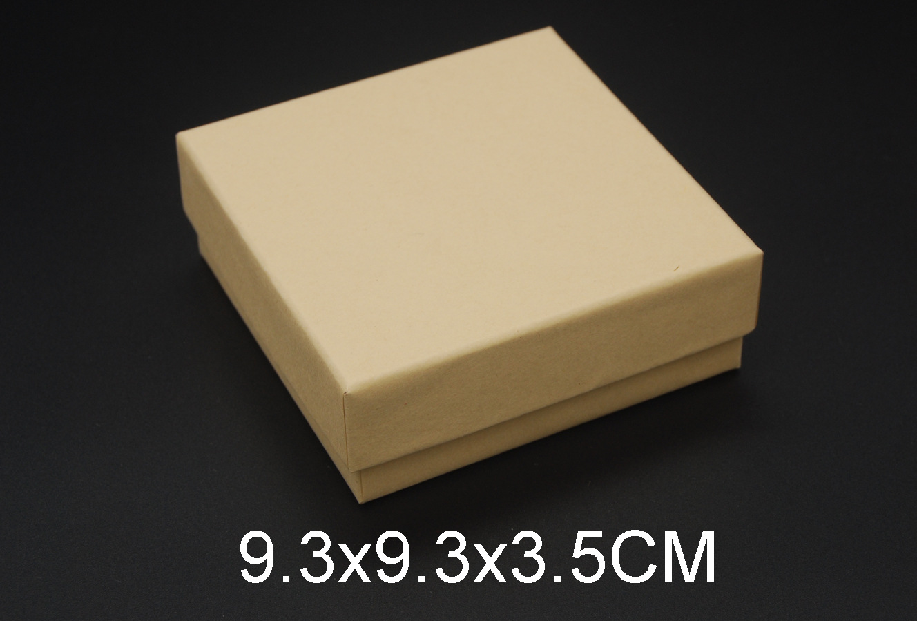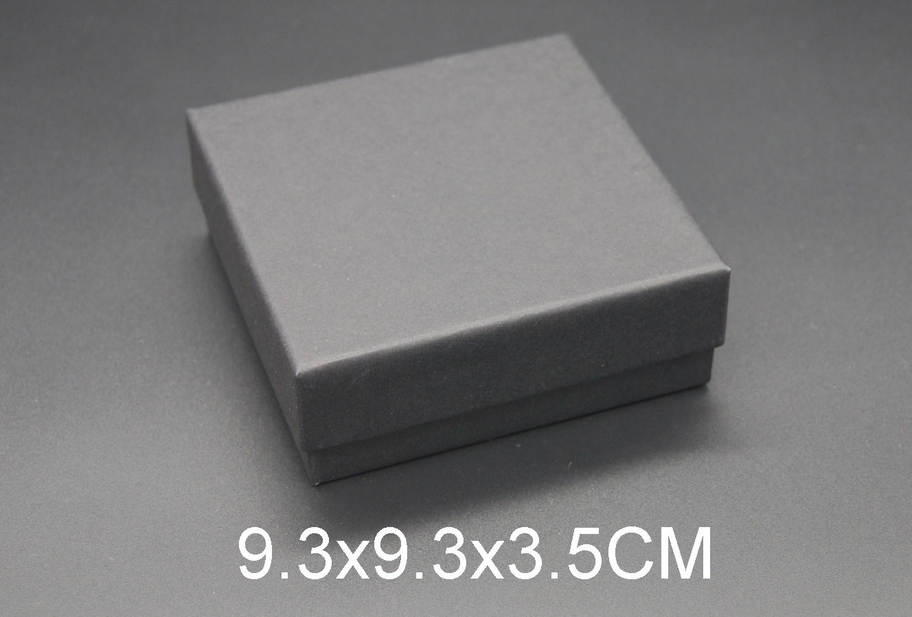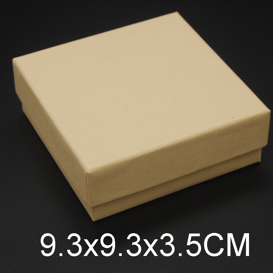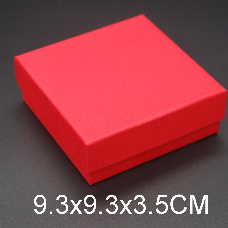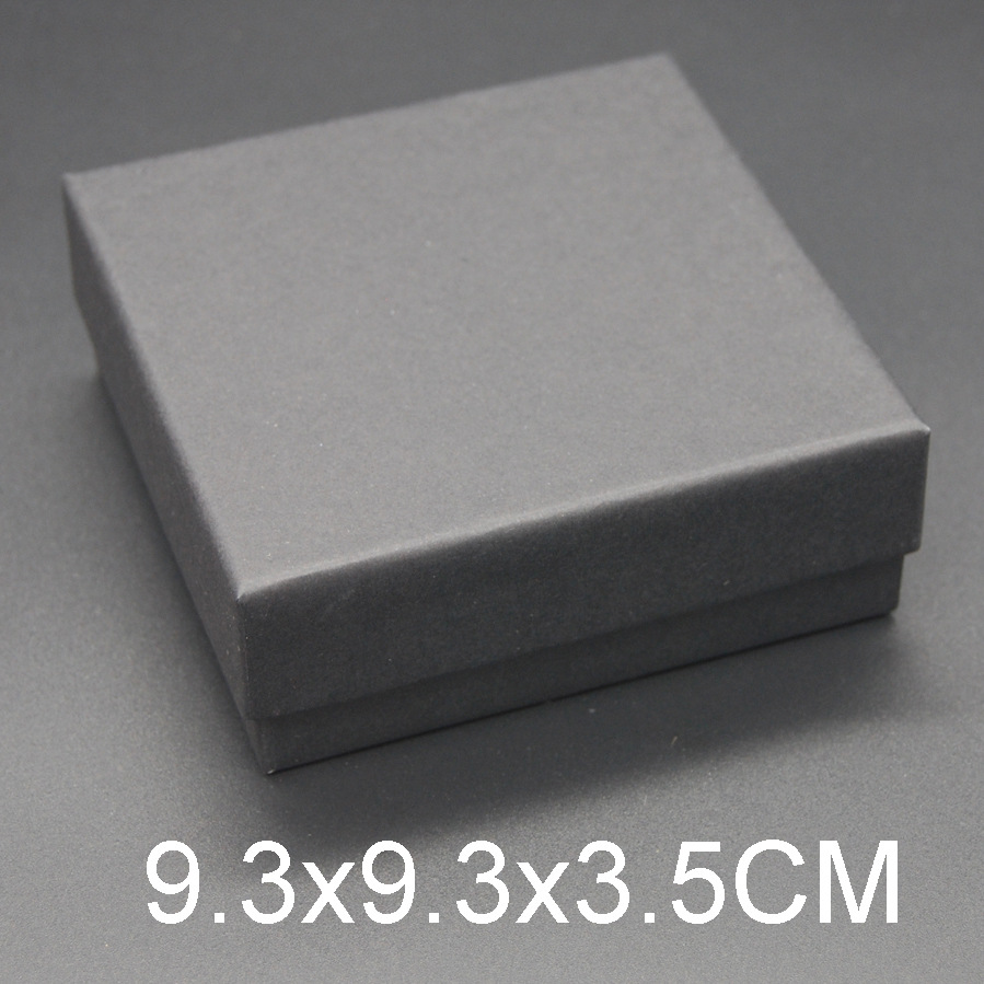 这款盒子属于一款:戒指/吊坠/耳钉/套装型首饰盒,尺寸为:9.3x9.3x3.5cm(外径),盒子材料是用700g纸板+120克牛皮纸生产而成,盒内是由1.5cm中密度的黑色海绵贴黑色绒布,海绵上开有可放戒指/吊坠/耳钉的孔槽,方便各人所需要而选择.