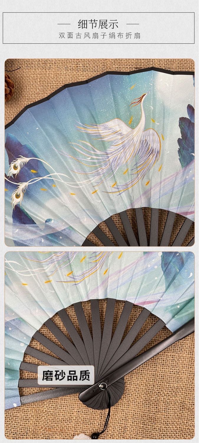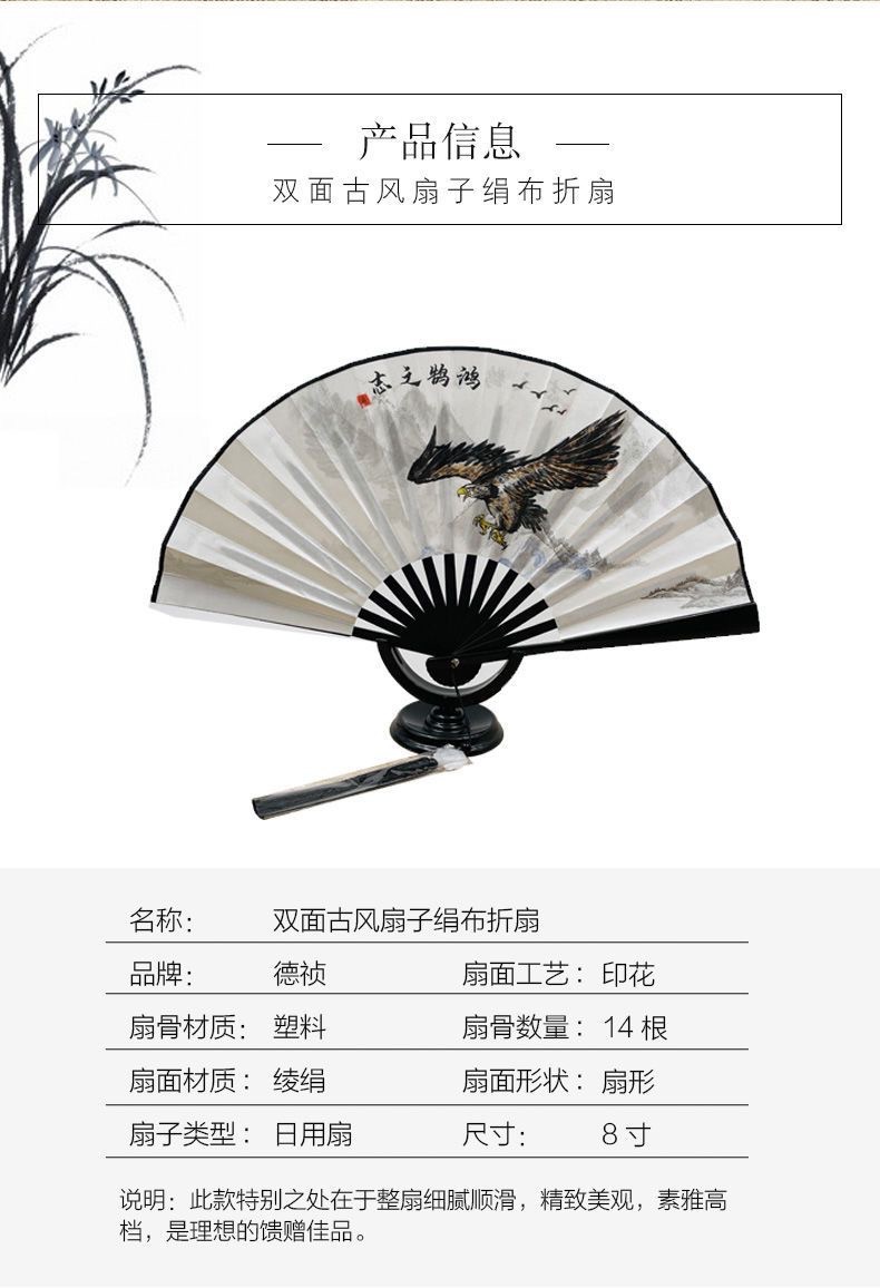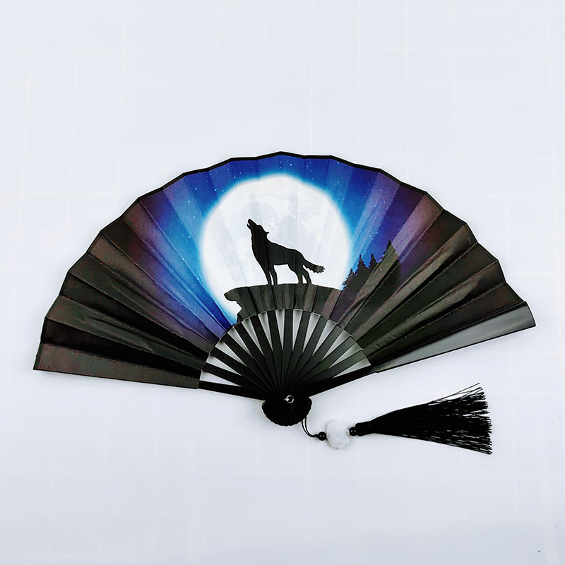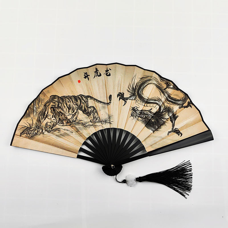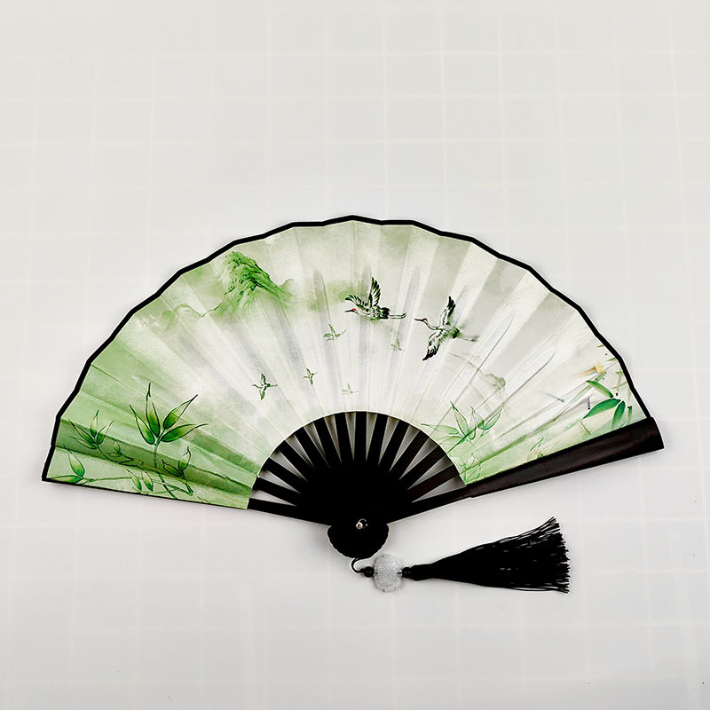 Chinese Style 8 inch plastic fan with tassel pendant antique domineering folding fan Men's Hanfu dance silk cloth fan wholesale