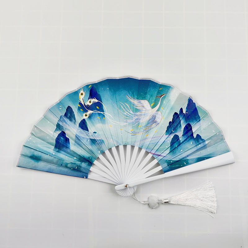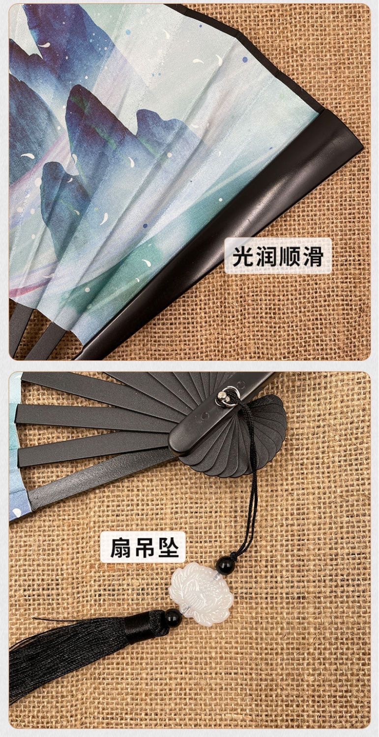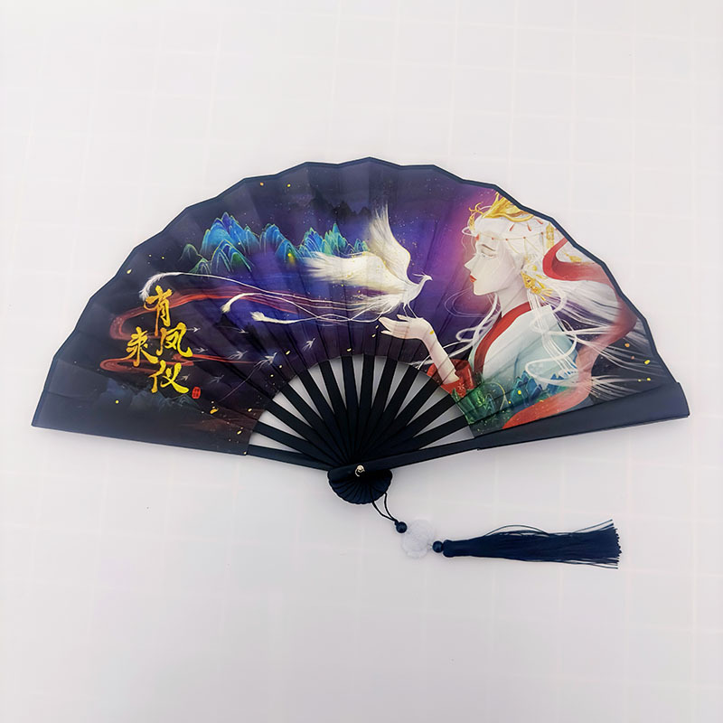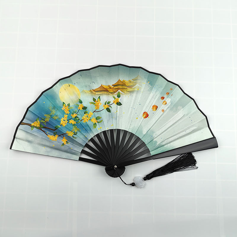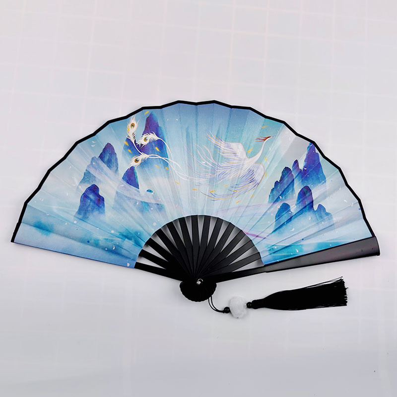 Chinese Style 8 inch plastic fan with tassel pendant antique domineering folding fan Men's Hanfu dance silk cloth fan wholesale