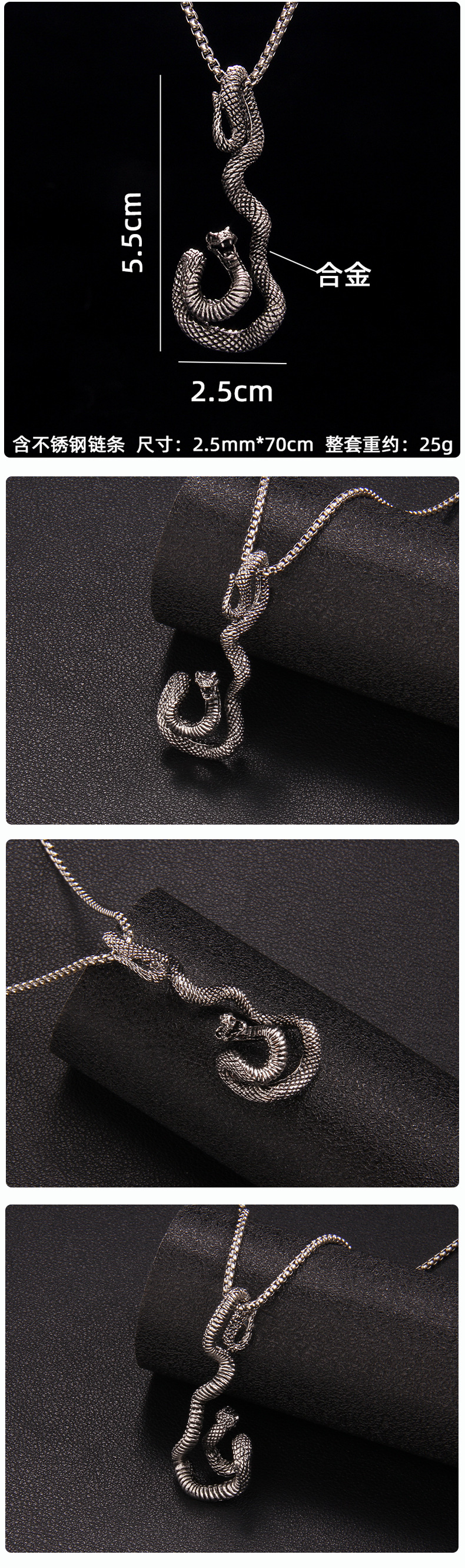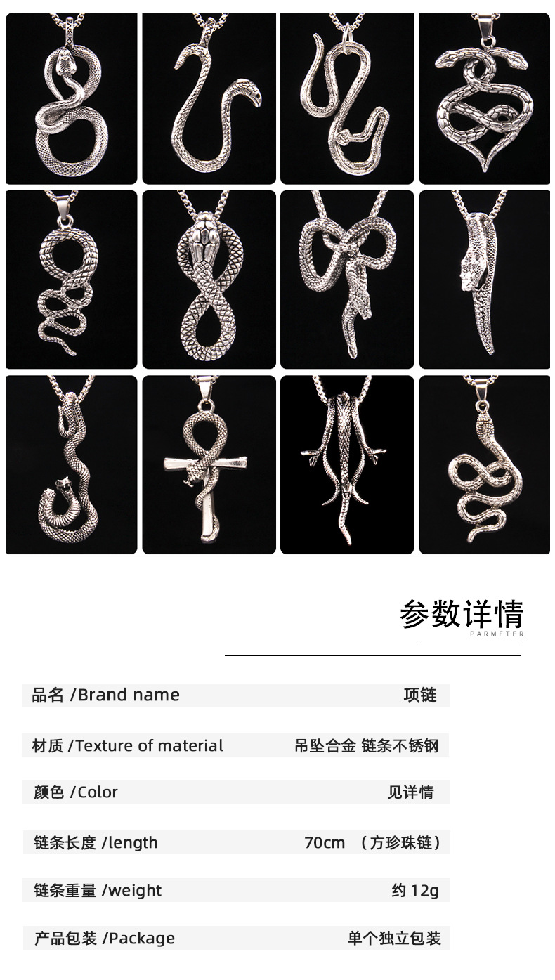 European and American Niche Personality Snake Necklace Men Fashion Punk Style Stainless Steel Mamba Snake Long Foreign Trade Chain Wholesale