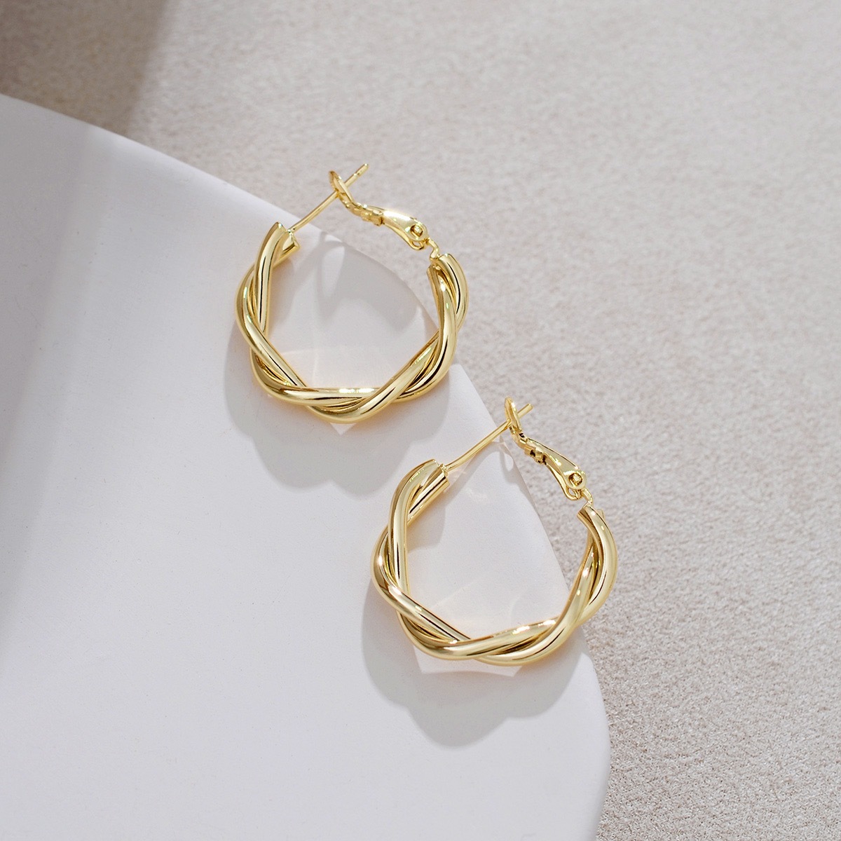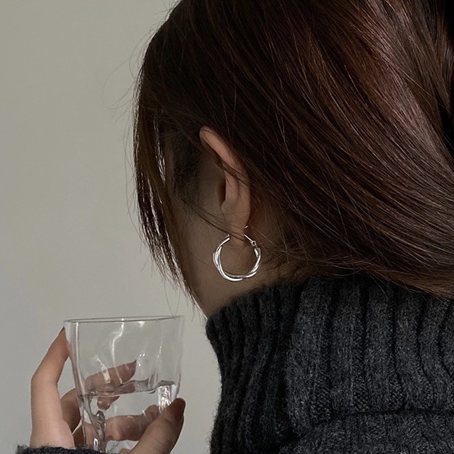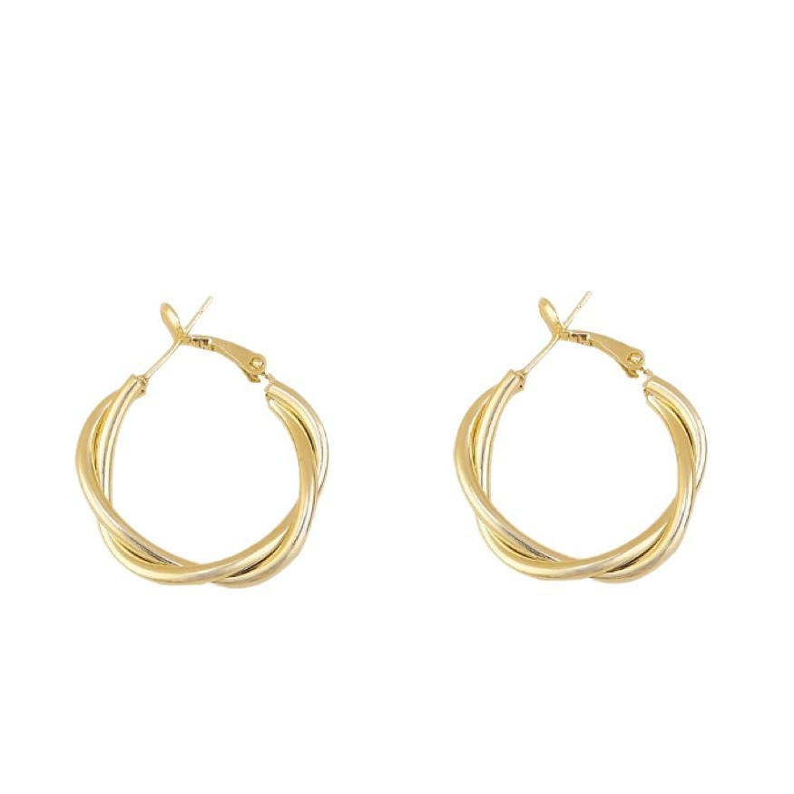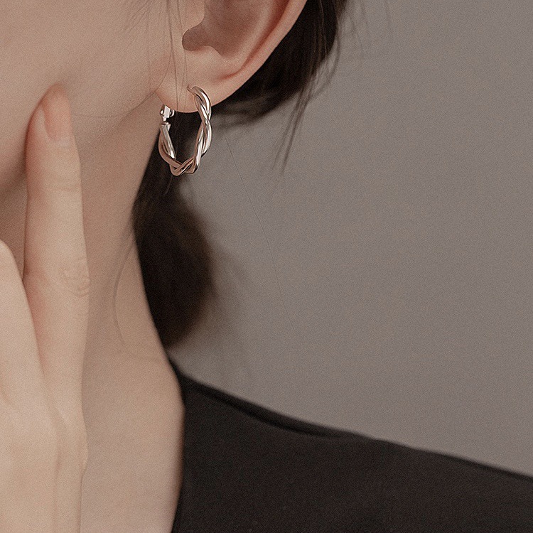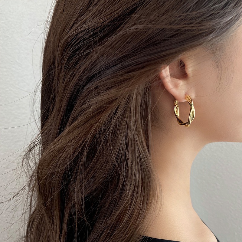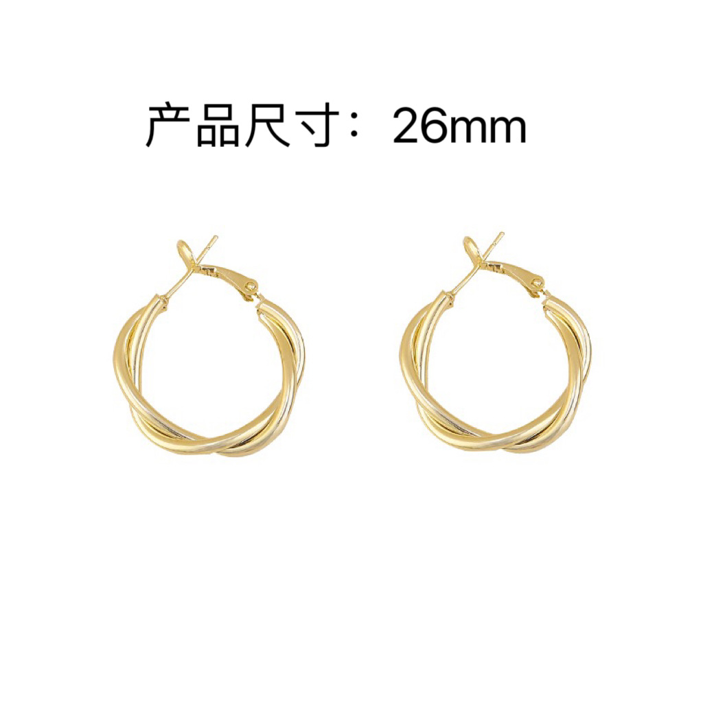 s925 Silver Needle Metal Ring Twist Wrap Earrings Women's New Fashion All-match Ear Buckle Earrings Copper Plated Gold