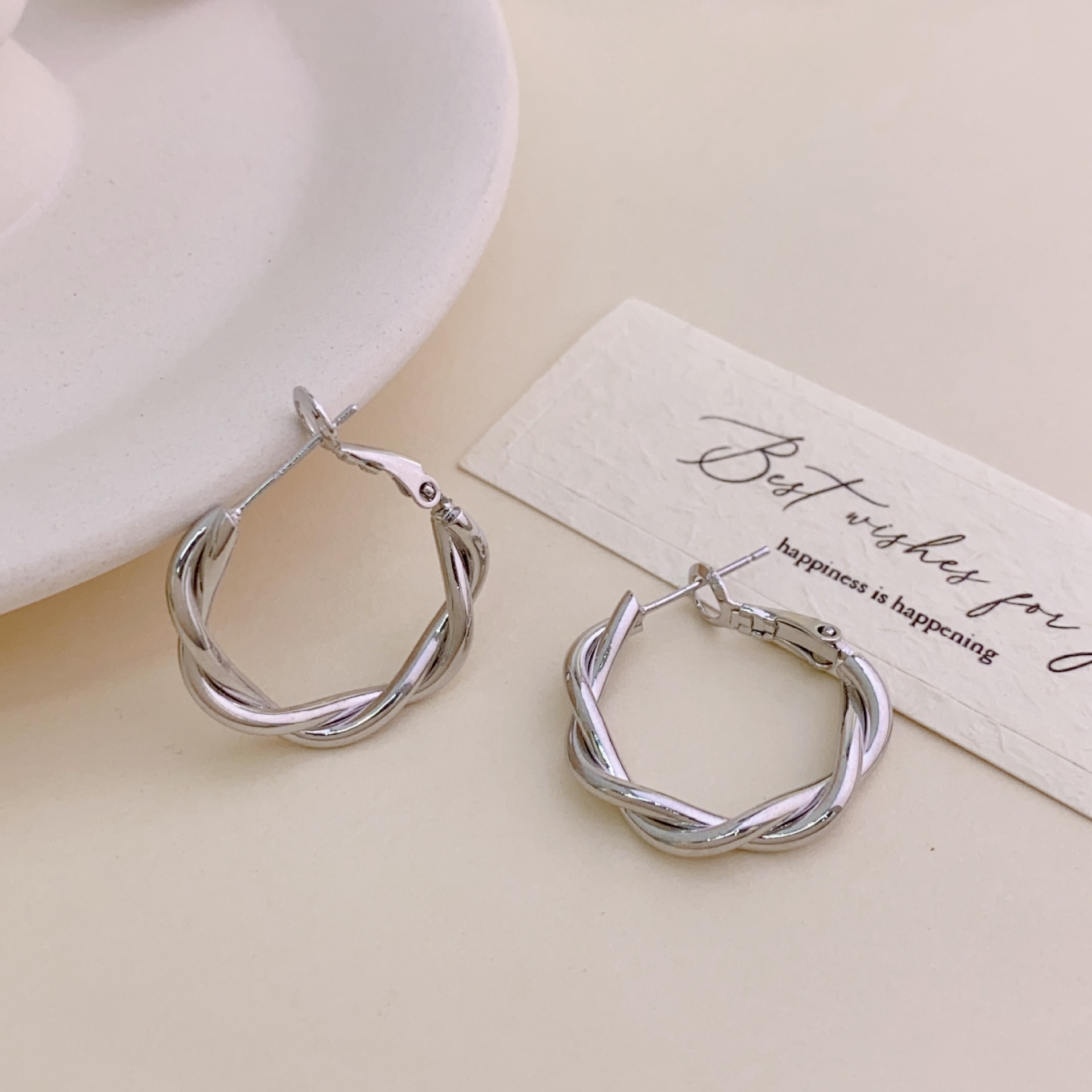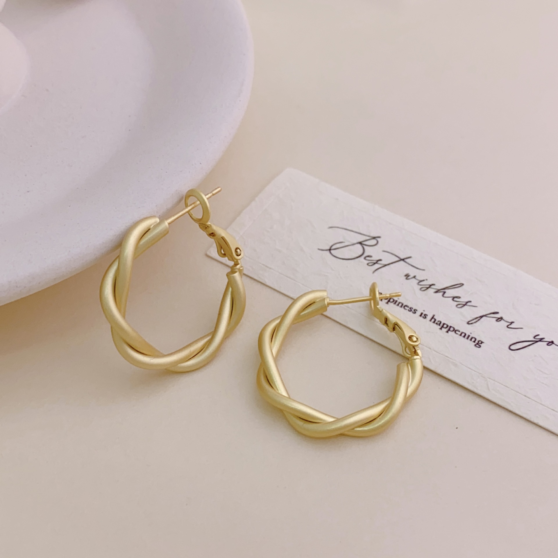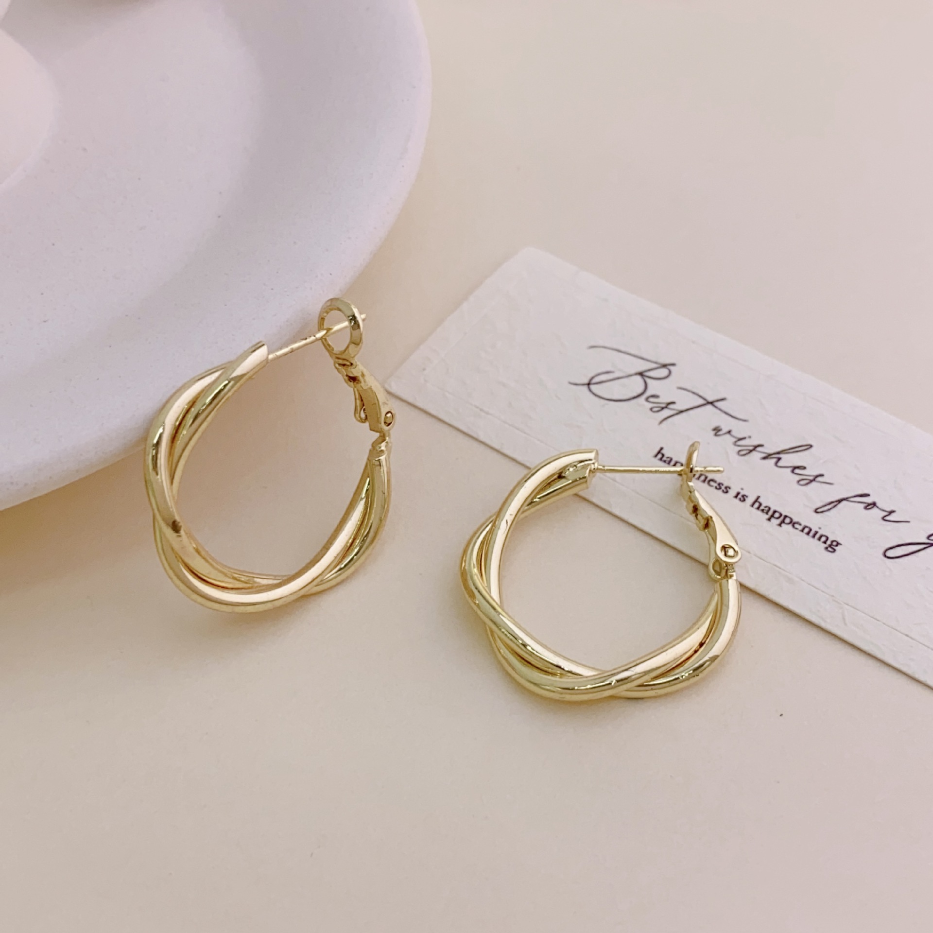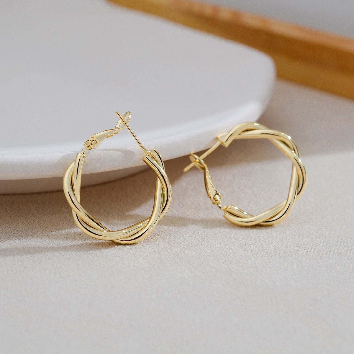 s925 Silver Needle Metal Ring Twist Wrap Earrings Women's New Fashion All-match Ear Buckle Earrings Copper Plated Gold