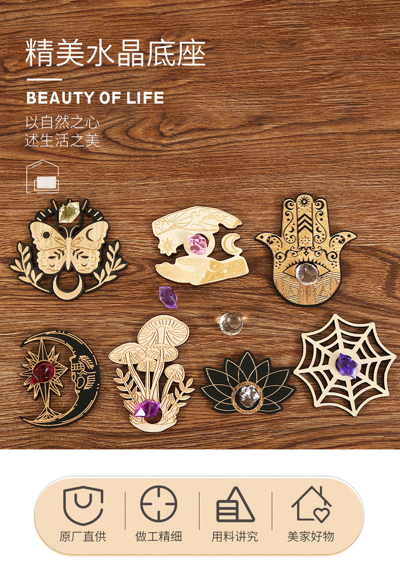 Amazon Meditation Animal Crystal Stone Wooden Ornaments Creative Desktop Craft Ornaments Energy Ball Cushion Wooden Products
