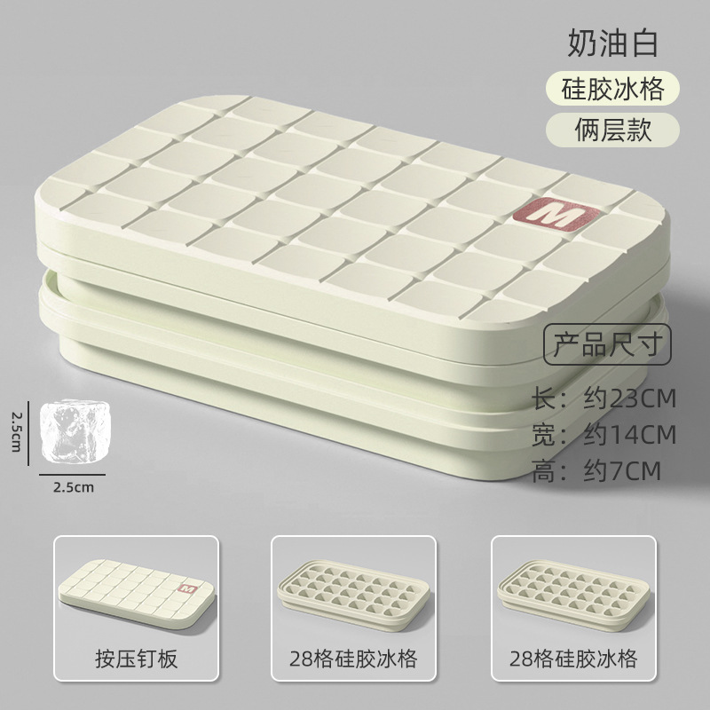 Cream white double layer 56 grids [ice tray + lid]