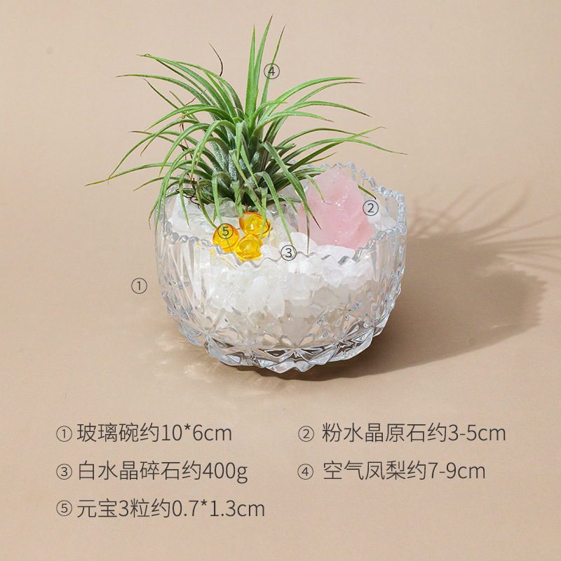 Purity: Natural pink crystal 3-5cm + white crystal gravel 400g + small ingot + air pineapple seedlings