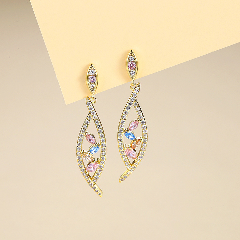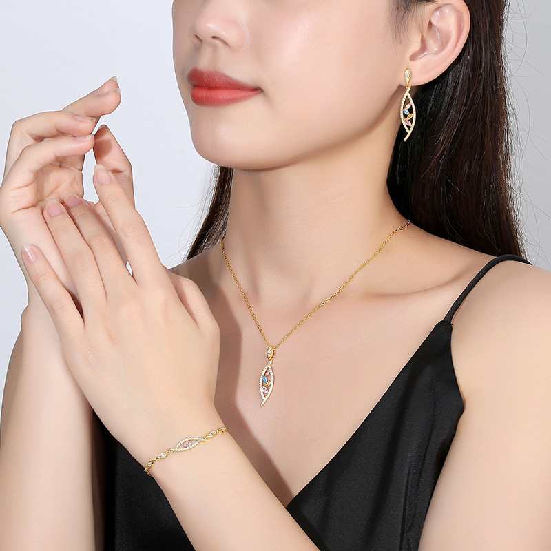 European and American Style Colored Diamond Horse Eye Necklace Women's Niche Light Luxury Earrings Gold-plated High-end Bracelet Design Jewelry suit
