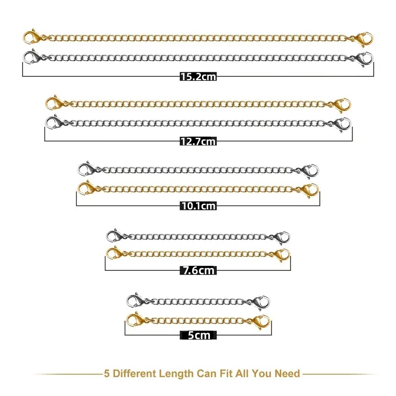 Cross-border Hot Jewelry Accessories Necklace Bracelet Extended Chain Double Head Lobster Clasp Plus Tail Chain Gold Silver Extended Chain