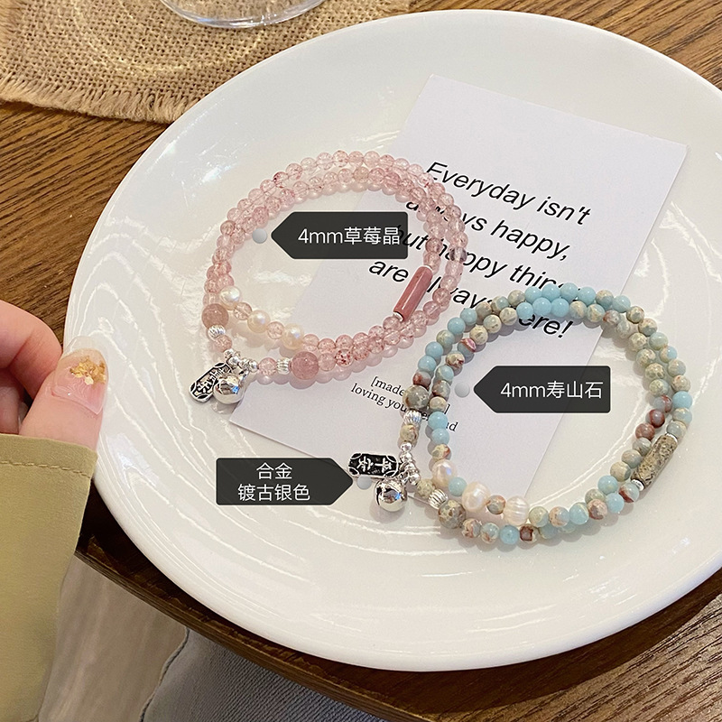约4mm寿山石+约4/5mm草莓晶+镀古银色合金配件