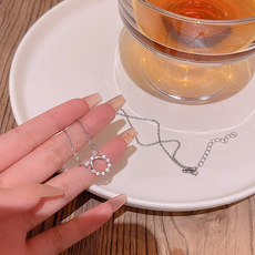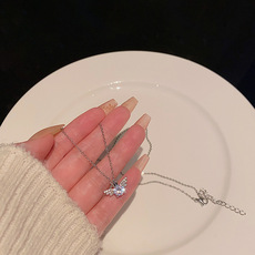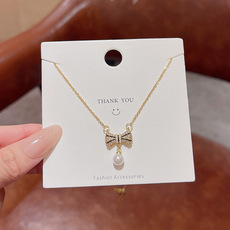 Light luxury niche zircon bow titanium steel necklace female versatile elegant simple internet celebrity same pendant clavicle chain