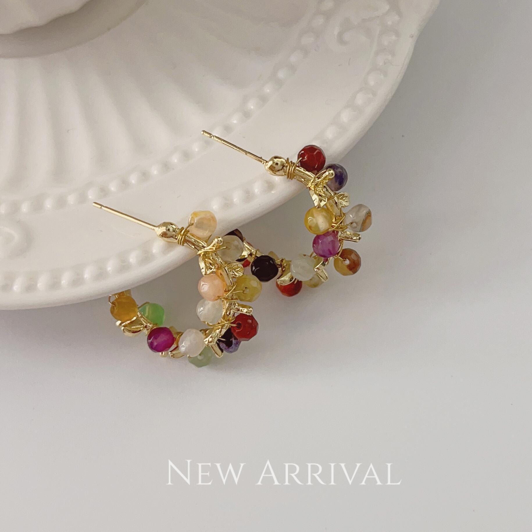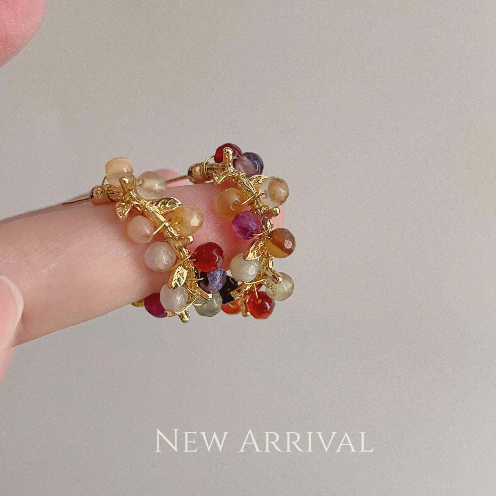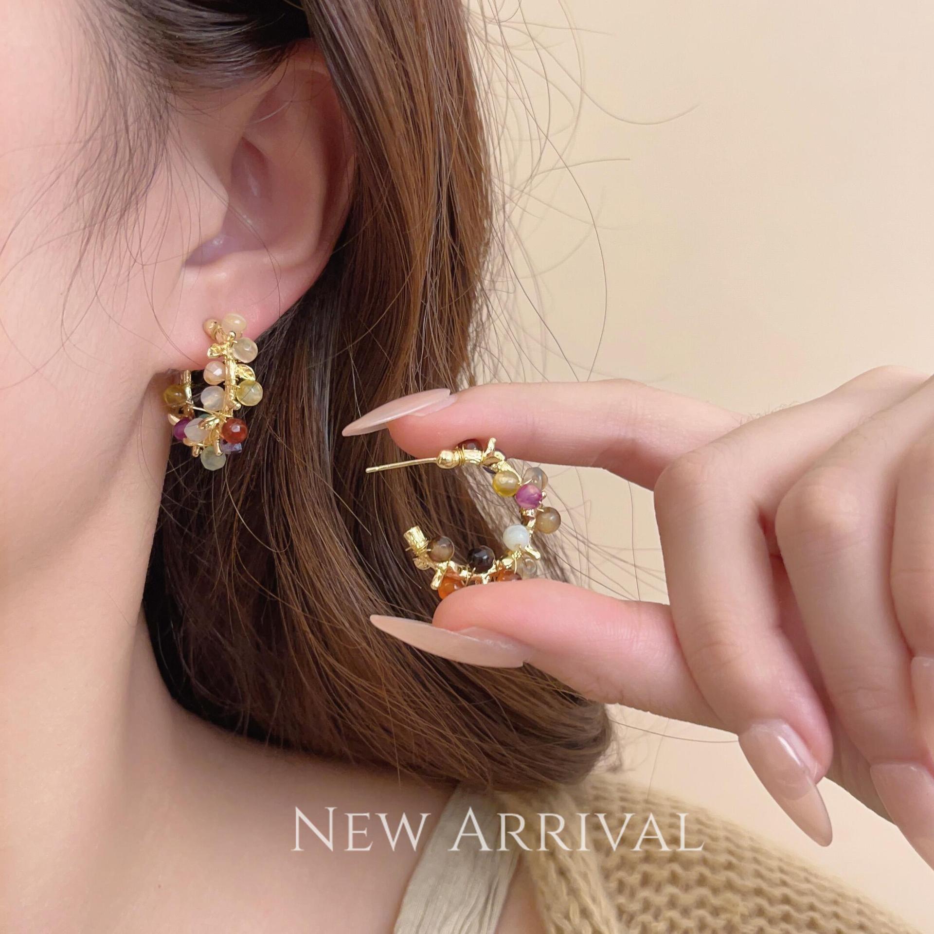 Natural Stone Super Fairy French Color Beaded Earrings Light Luxury Ear Studs Women's New Western Style Earrings 925 Silver Pin