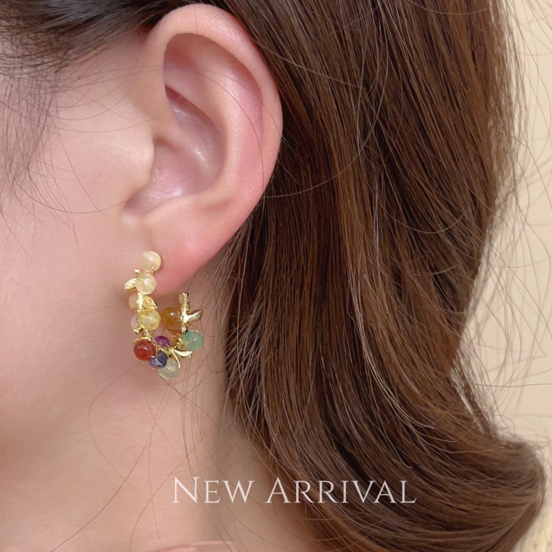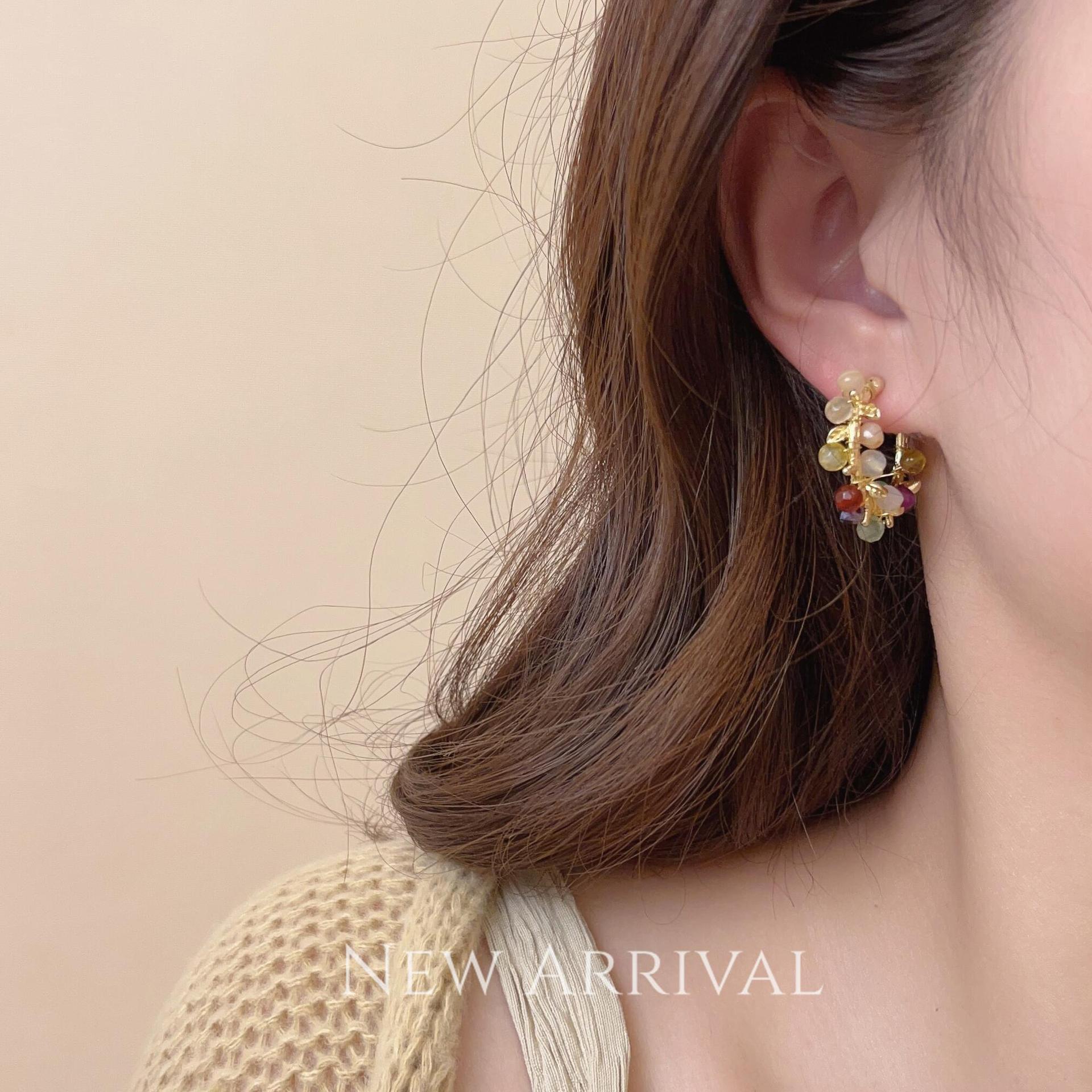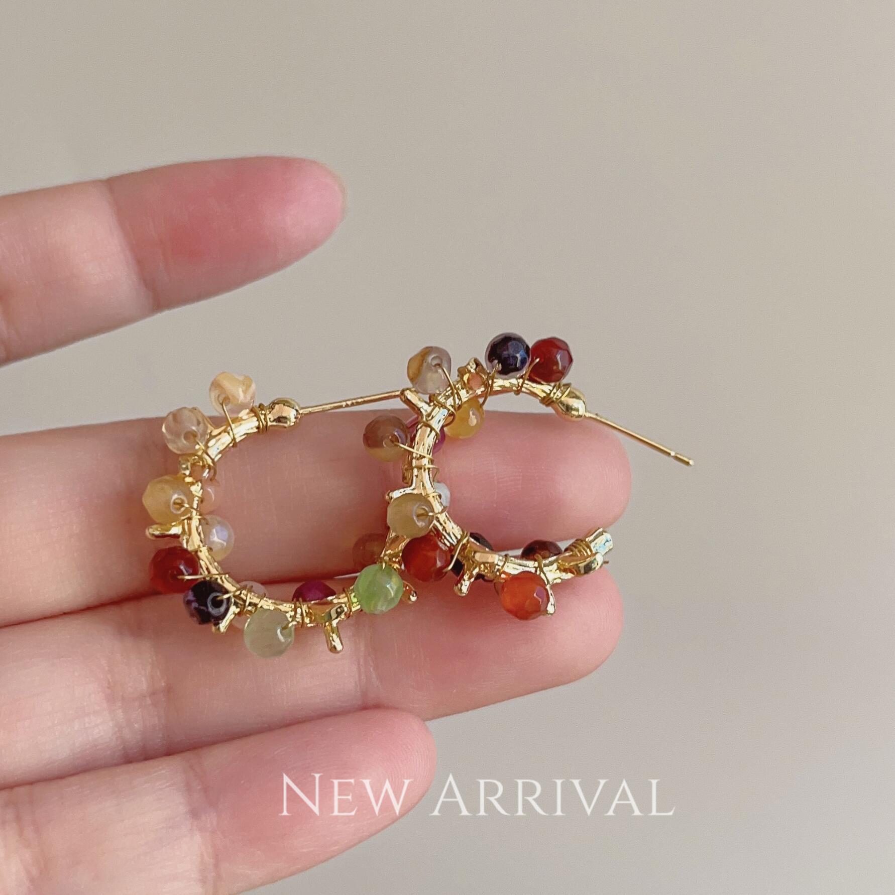Natural Stone Super Fairy French Color Beaded Earrings Light Luxury Ear Studs Women's New Western Style Earrings 925 Silver Pin