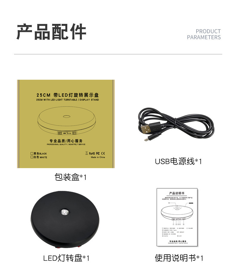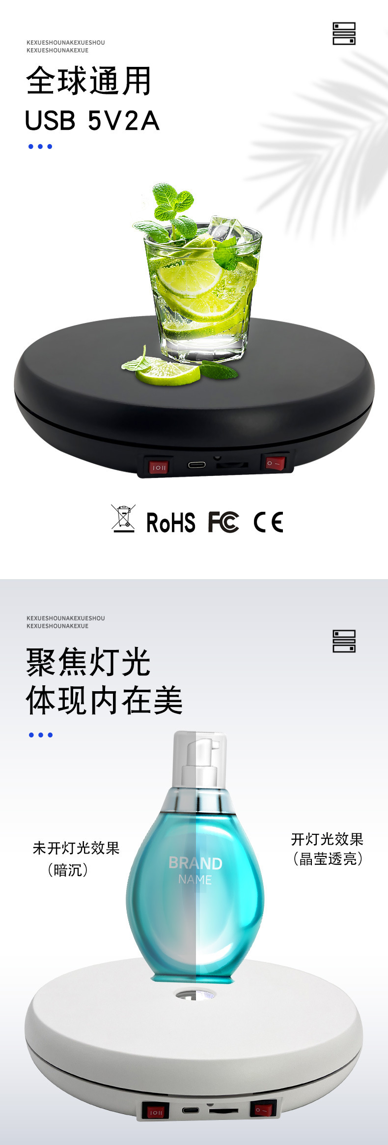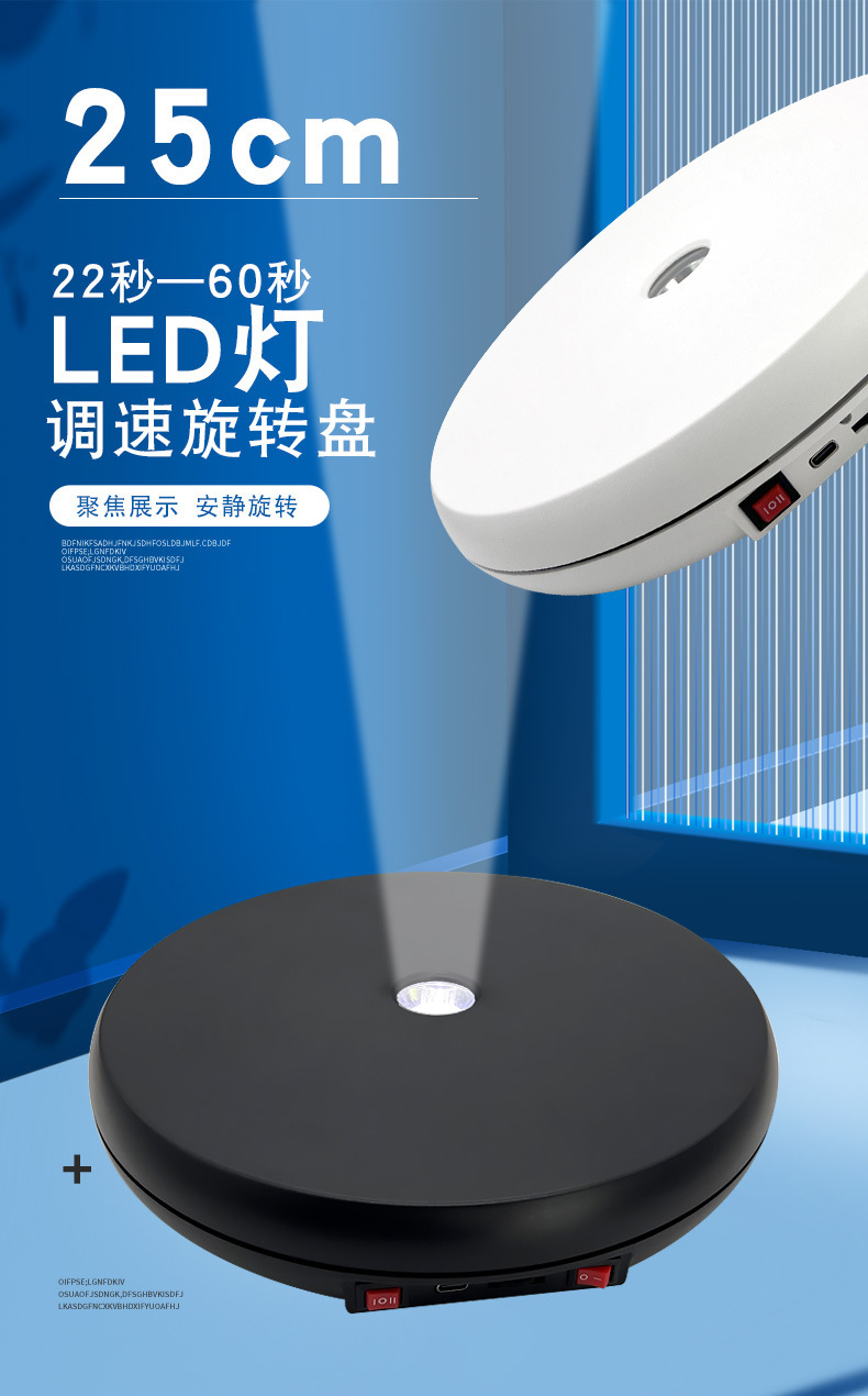 Led Light Toy Figurine Adjustable Speed Turntable Jewelry Display Stand for Live Streaming, High-End Jewelry Display