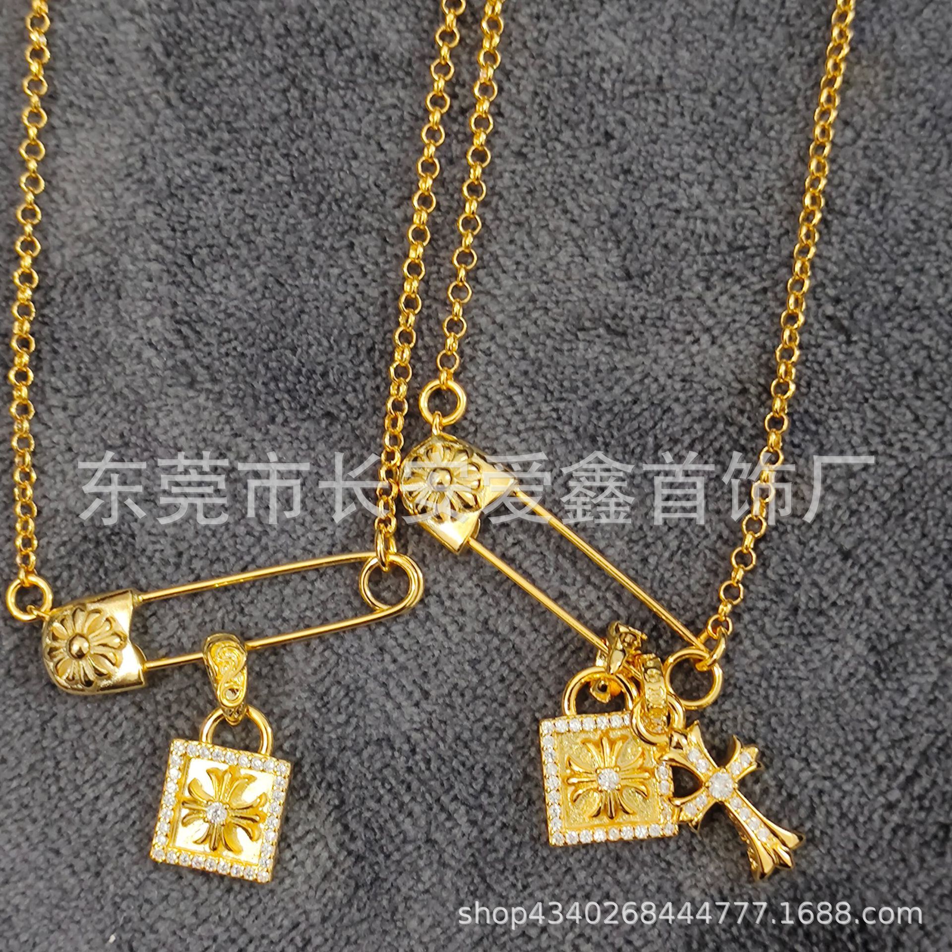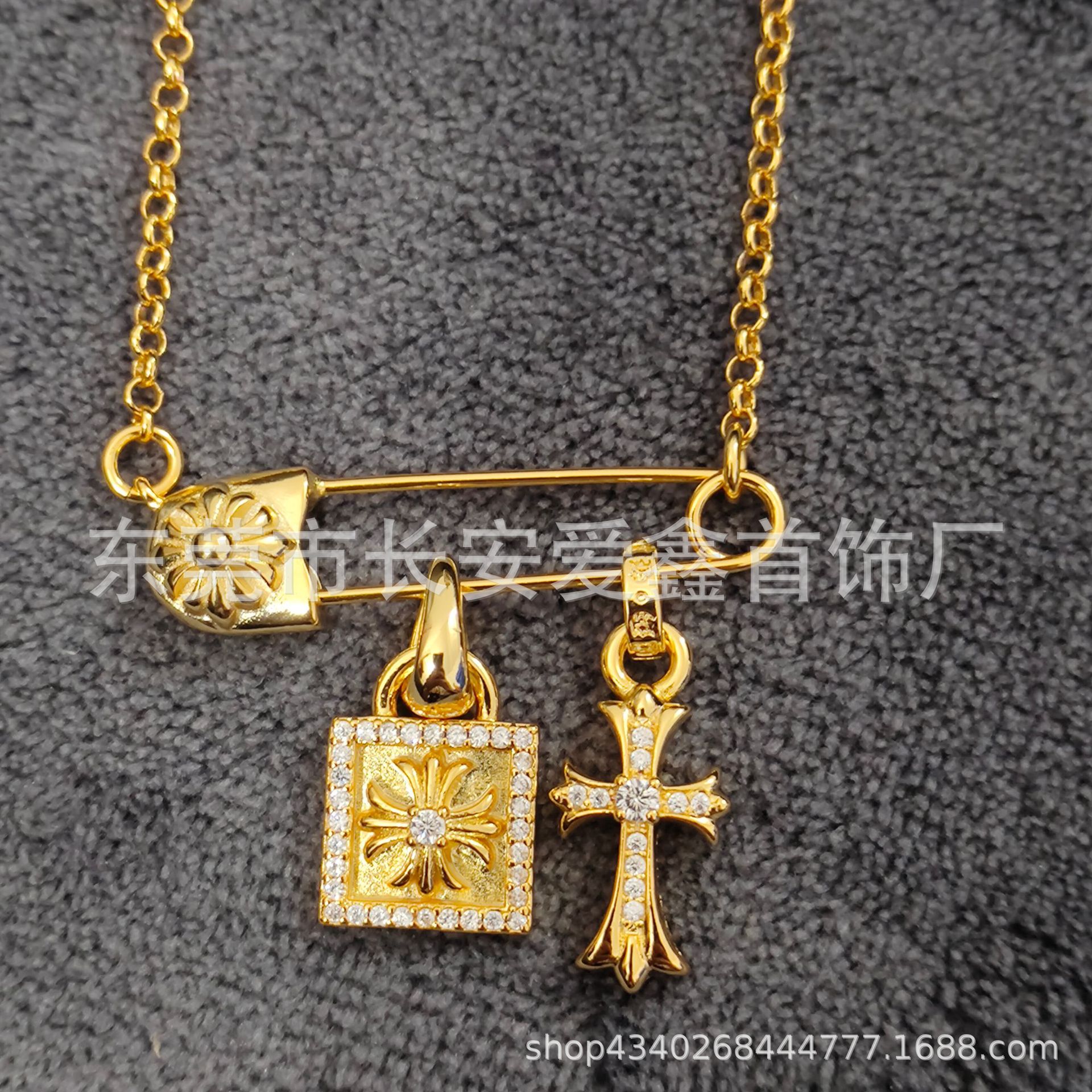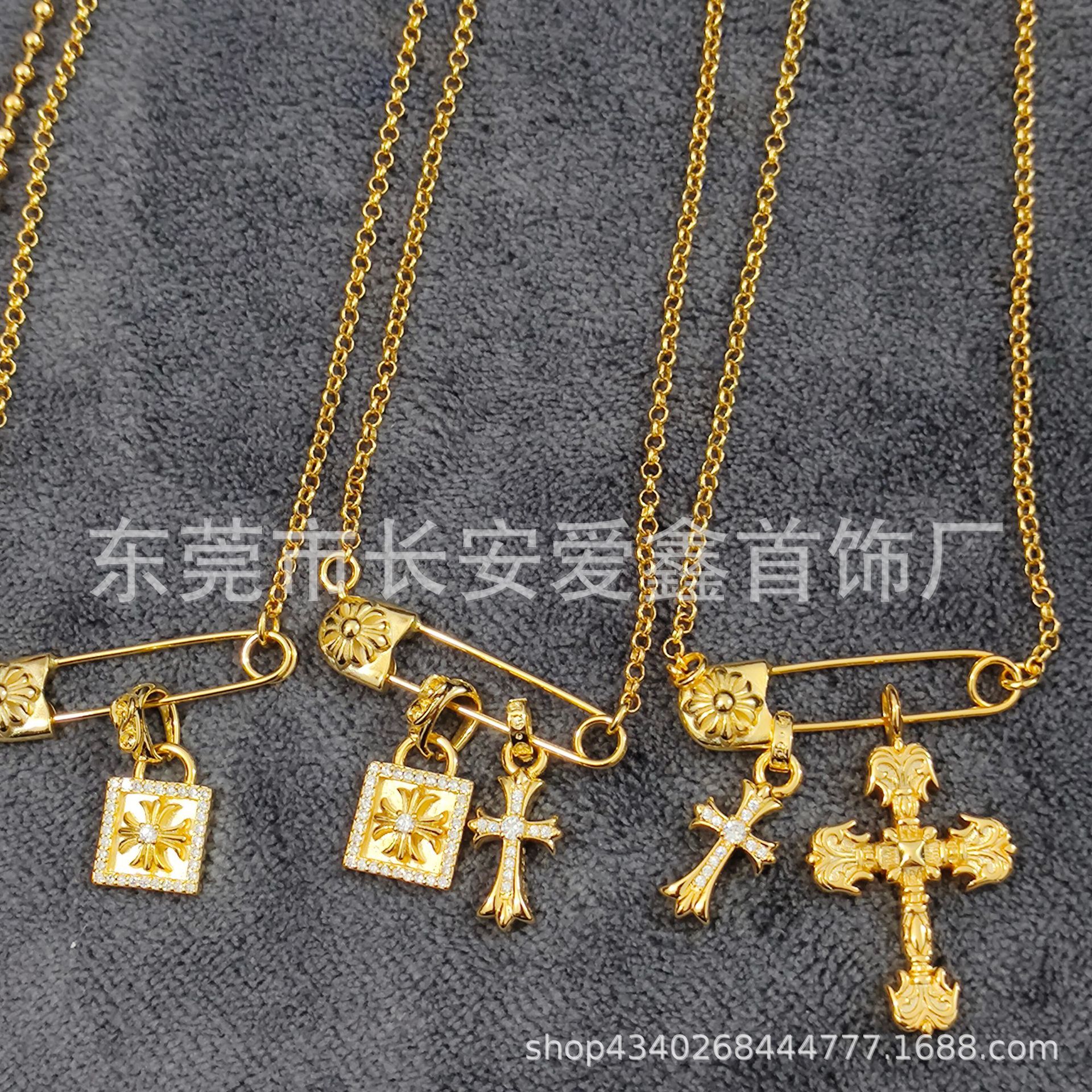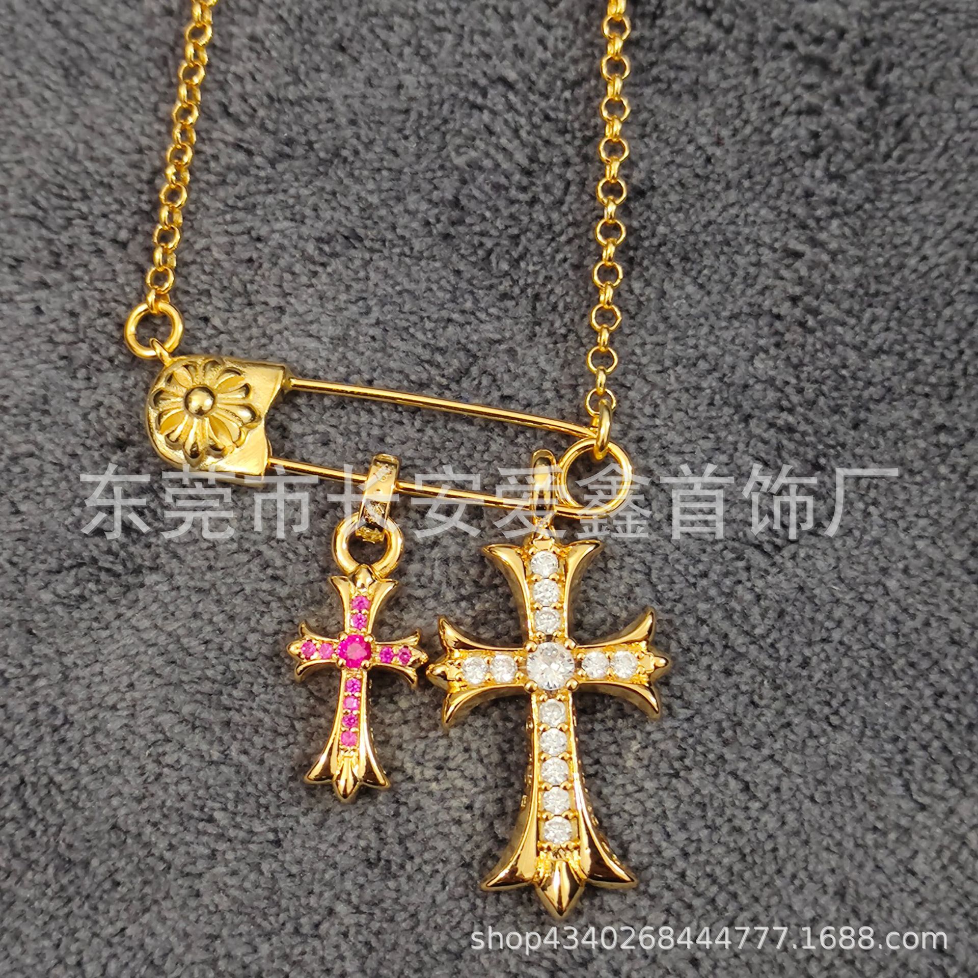Croda collarbone golden pin cross pendant hip-hop couples universal personality men's and women's necklace wholesale