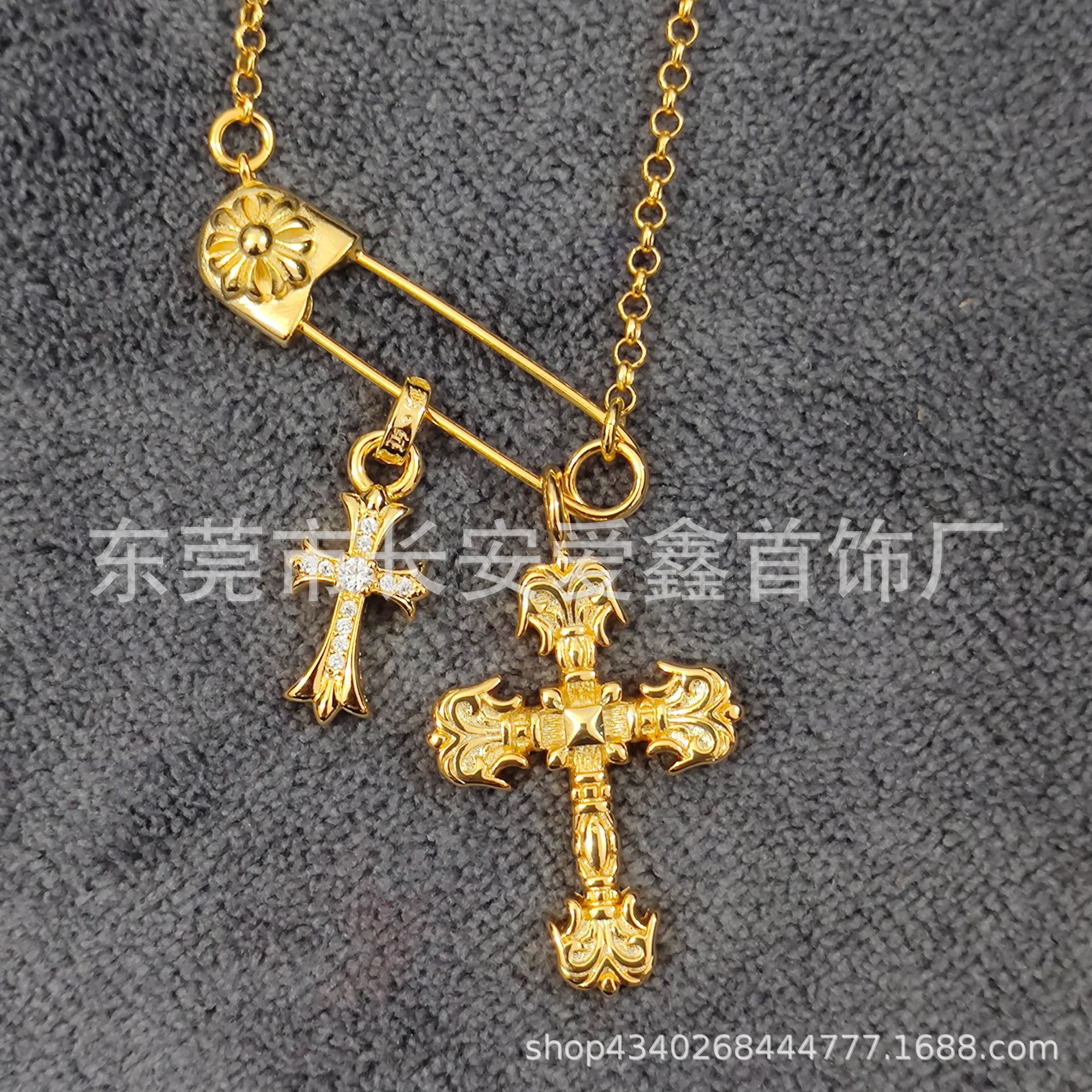 Color: Gold pin matching 55cm cross pendant tag