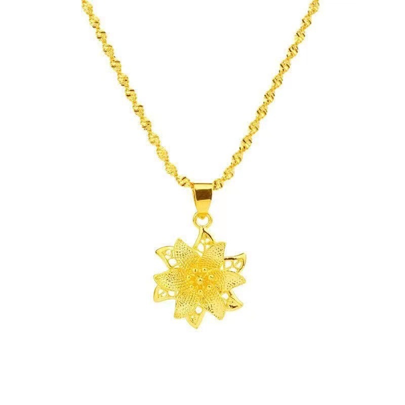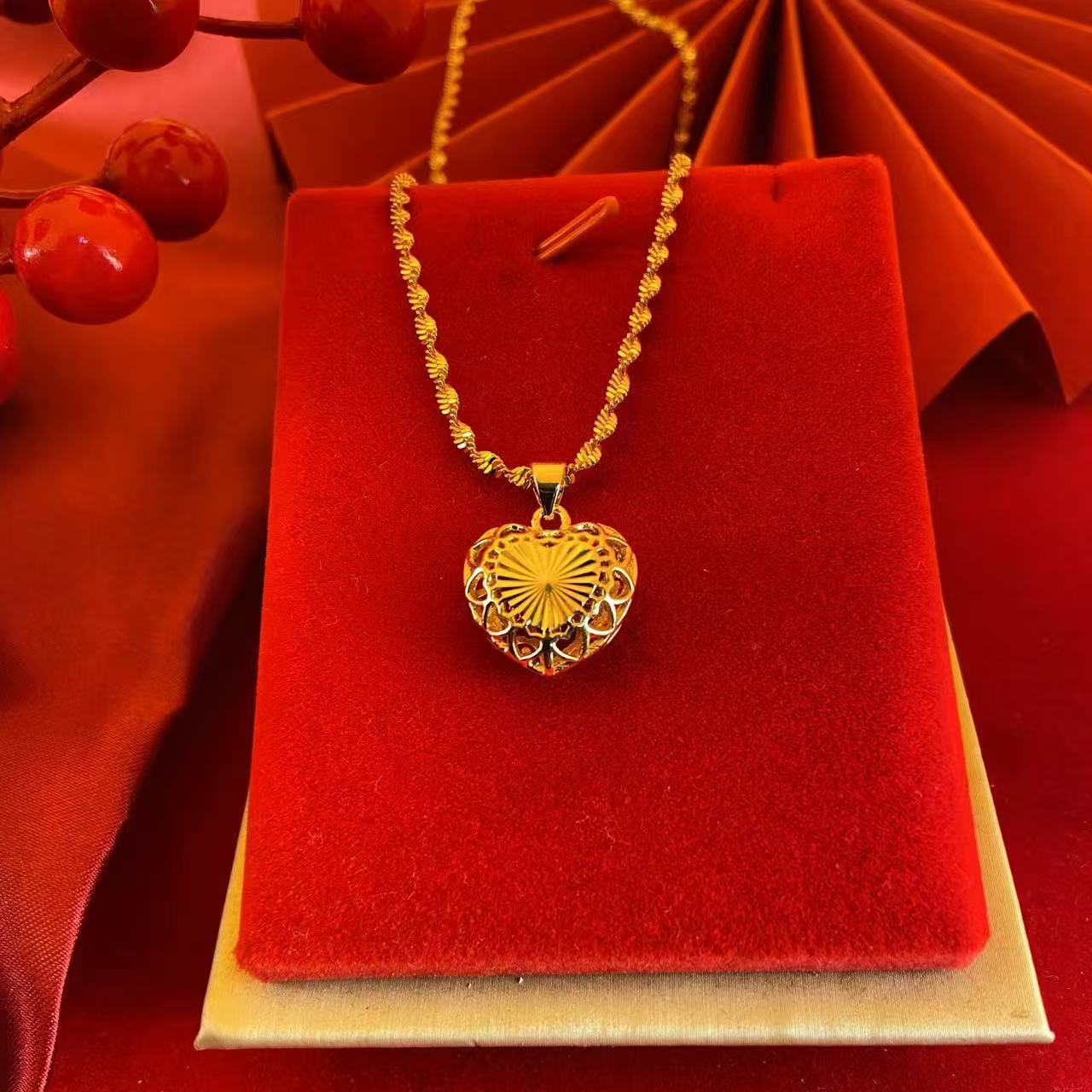 Copper Gold-plated Love Rose Necklace 2023 Clavicle Chain Simple Sand Gold Chain Four-leaf Peach Heart Pendant Jewelry